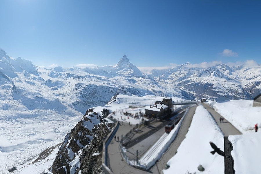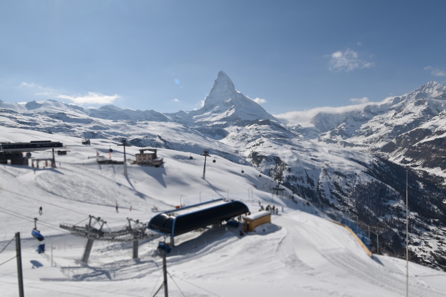 Klein Matterhorn : L'accès de Zermatt au Klein Matterhorn est le plus inconfortable, car le téléphérique part d'une extrémité du village (à 15 minutes de marche du centre, il y a un ski-bus). Le Klein Matterhorn est le plus grand des domaines de Zermatt, avec les pistes les plus attrayantes et les plus difficiles, et avec la connexion à la station italienne de Cervinia. Les pistes de ski s'étendent de 1600 à 3800 m d'altitude. Au sommet se trouve un glacier où l'on peut skier toute l'année. Tout au long de l'année, des milliers de touristes empruntent ces téléphériques pour profiter d'une vue incroyable sur le Cervin, le glacier et les autres sommets. À Zermatt, monter est presque (mais seulement presque) aussi excitant que descendre.