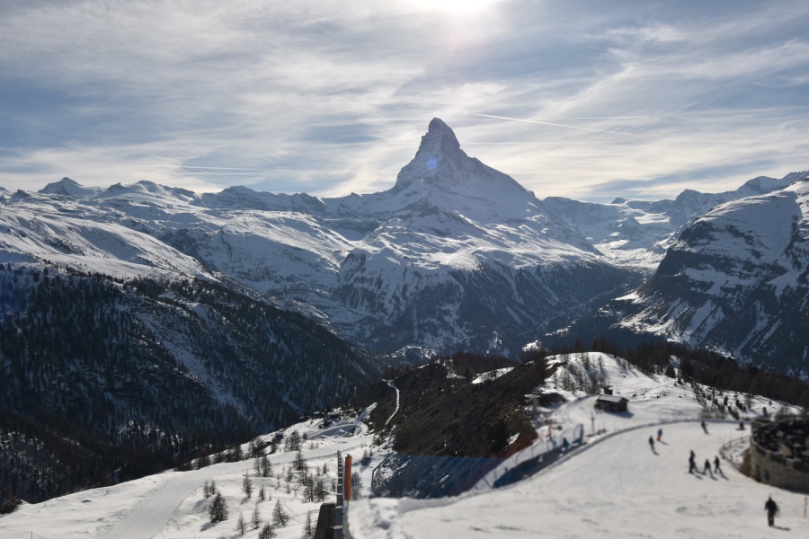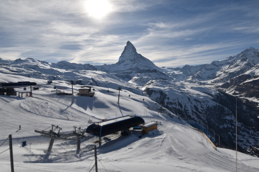 Klein Matterhorn : L'accès de Zermatt au Klein Matterhorn est le plus inconfortable, car le téléphérique part d'une extrémité du village (à 15 minutes de marche du centre, il y a un ski-bus). Le Klein Matterhorn est le plus grand des domaines de Zermatt, avec les pistes les plus attrayantes et les plus difficiles, et avec la connexion à la station italienne de Cervinia. Les pistes de ski s'étendent de 1600 à 3800 m d'altitude. Au sommet se trouve un glacier où l'on peut skier toute l'année. Tout au long de l'année, des milliers de touristes empruntent ces téléphériques pour profiter d'une vue incroyable sur le Cervin, le glacier et les autres sommets. À Zermatt, monter est presque (mais seulement presque) aussi excitant que descendre.
