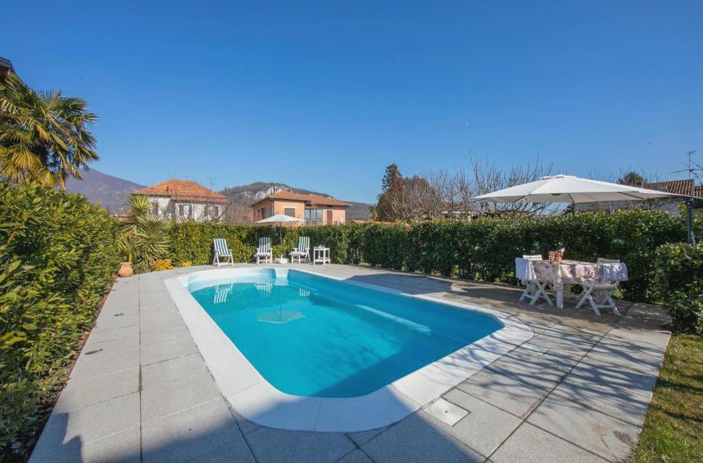 Casa Amabile With Salty water Pool - Happy Rentals se encuentra en Reno Di Leggiuno, a solo 22 km de Villa Panza, y ofrece alojamiento con piscina de temporada al aire libre, jardín, terraza y wifi gratis. El alojamiento tiene parking privado gratis y está a 37 km de Monasterio de Torba y a 38 km de Estación de Lugano. Este apartamento con aire acondicionado consta de 1 dormitorio, una sala de estar, una cocina totalmente equipada con nevera y cafetera, y 1 baño con bidet y ducha. Hay toallas y ropa de cama en el apartamento. Estación de Mendrisio está a 40 km del alojamiento, y Centro de Exposiciones de Lugano está a 41 km. El aeropuerto (Aeropuerto de Milán - Malpensa) está a 33 km.