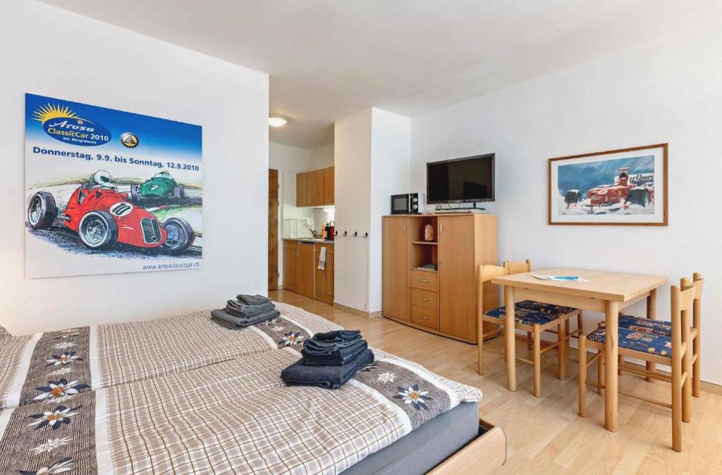 Derby 26A está en Arosa y ofrece alojamiento con balcón y wifi gratis. El apartamento, que tiene parking privado gratis, está en una zona en la que se pueden practicar actividades como senderismo y tenis. El apartamento de 1 dormitorio tiene sala de estar con TV, zona de cocina totalmente equipada con nevera y 1 baño. El aeropuerto (Aeropuerto de St Gallen - Altenrhein) está a 113 km.