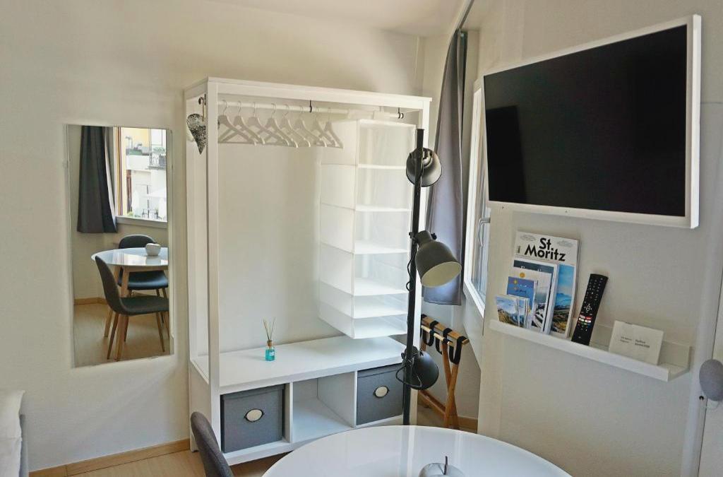 Charmantes, gemütliches Studio, im Zentrum - C2 es un alojamiento con wifi gratis y vistas a la ciudad que está en St. Moritz, a solo 8 min a pie de Estación de tren de St. Moritz. El apartamento se encuentra en un edificio de 1978 y está en una zona en la que se pueden practicar actividades como senderismo y esquí. El apartamento tiene 1 dormitorio, una zona de cocina con nevera y microondas, y 1 baño con ducha, artículos de aseo gratuitos y lavadora. Hay toallas y ropa de cama en el apartamento. Hay guardaesquíes en el propio alojamiento. Campo de golf Samedan & Zuoz-Madulain de Engadina está a 8,3 km del alojamiento, y Centro de Visitantes del Parque Nacional Suizo está a 35 km.