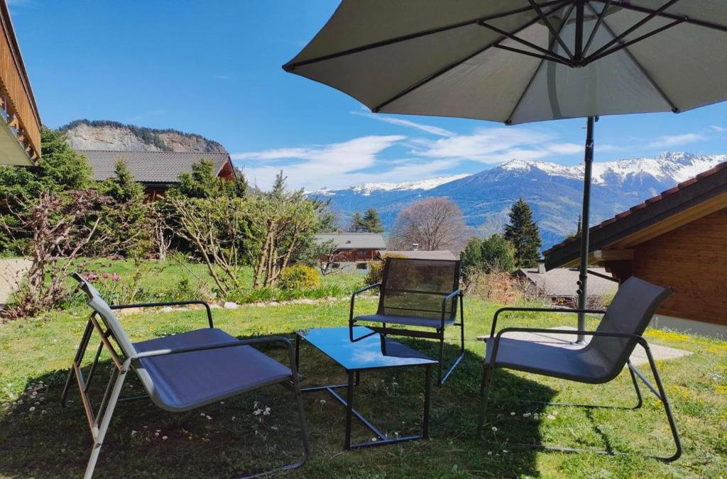 2,5 Plein Sud avec terrasse, que cuenta con vistas a la montaña, ofrece alojamiento con terraza y cafetera, y está a unos 27 km de Sion. Este apartamento dispone de jardín, zona de barbacoa, wifi gratis y parking privado gratis. Este apartamento cuenta con 1 dormitorio, cocina con nevera y lavavajillas, TV de pantalla plana, zona de estar y 1 baño con ducha. Hay toallas y ropa de cama en el apartamento. Crans-sur-Sierre está a 46 km del alojamiento, y Mont Fort está a 31 km. El aeropuerto (Aeropuerto internacional de Ginebra) está a 152 km.