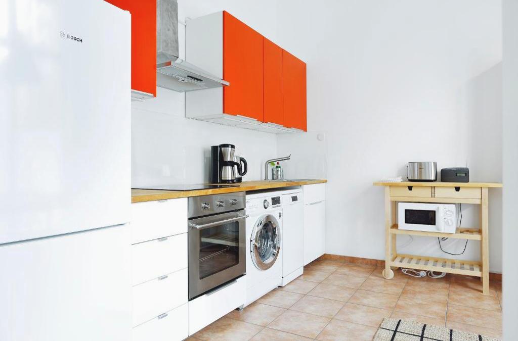 SWINE by ROCKCHAIR Apartments l SUPERHOST Status l Cozy Family & Business Flair in City Center "Mitte" Modern Studio Boxspringbed welcomes you! ofrece wifi gratis y se encuentra en el centro de Berlín, a 11 min a pie de Sitio conmemorativo del Muro de Berlín y a 2 km de Museo de Historia Natural. Este apartamento está a 3,1 km de Catedral de Berlín y a 3,3 km de Torre de Televisión de Berlín. El apartamento de 1 dormitorio cuenta con sala de estar con TV de pantalla plana, cocina totalmente equipada y 1 baño. Neues Museum está a 3,3 km del alojamiento, y Museo Histórico Alemán está a 3,3 km. El aeropuerto (Aeropuerto de Berlín-Brandeburgo Willy Brandt) está a 30 km.