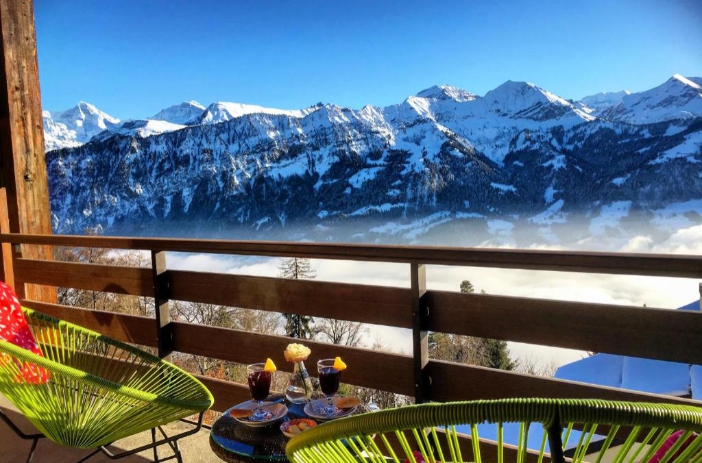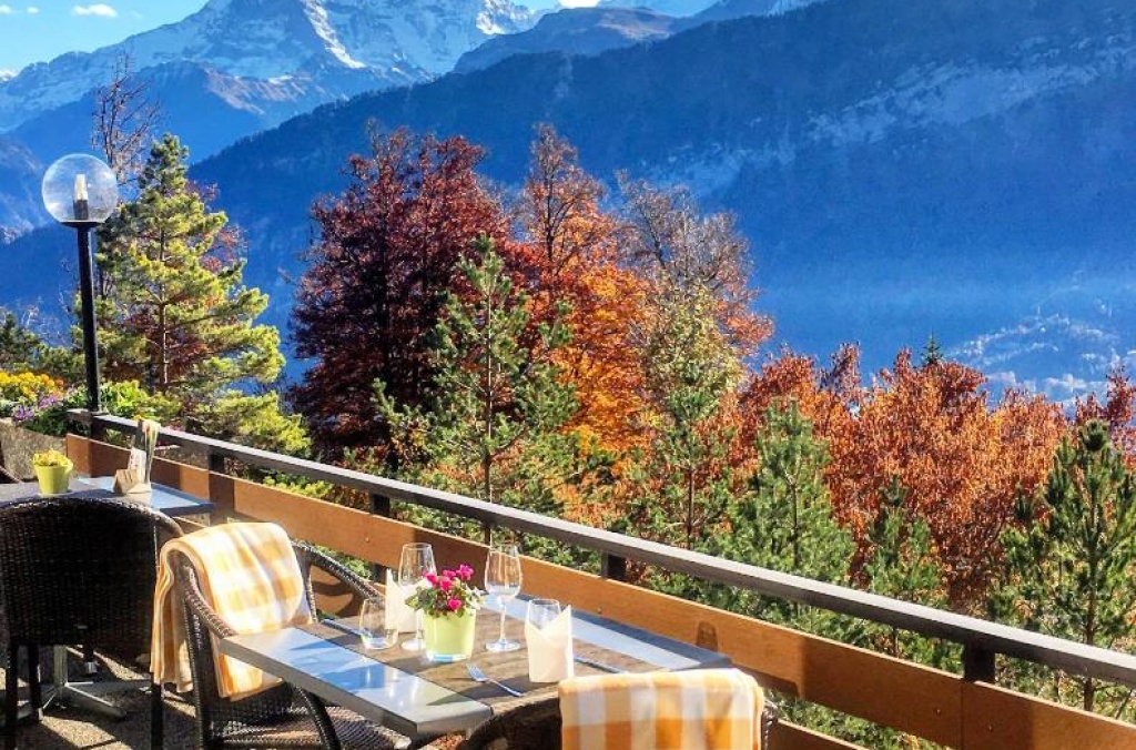 The family-run, non-smoking Hotel Gloria in Beatenberg, a 10-minute walk from the Niederhorn cable car, offers spacious ROOMS ALL WITH PRIVATE BALCONIES AND LAKE AND MOUNTAIN VIEWS. Wi-Fi and parking are available for free. The Hotel Gloria includes a panorama restaurant and a beautiful outdoor sun terrace :which is open for Dinner on Friday, Saturday & Sunday ( reservations are essential) : In the panorama restaurant chef Bernhard creates a combination of Swiss classics and international specialities using only the finest local produce. A FRESH ORGANIC BREAKFAST IS INCLUDED FOR FREE SHOWCASING FRESH LOCAL PRODUCE. It is perfectly located as a base for exploring the Bernese Oberland, offering fantastic Alpine hiking trails at the doorstep.