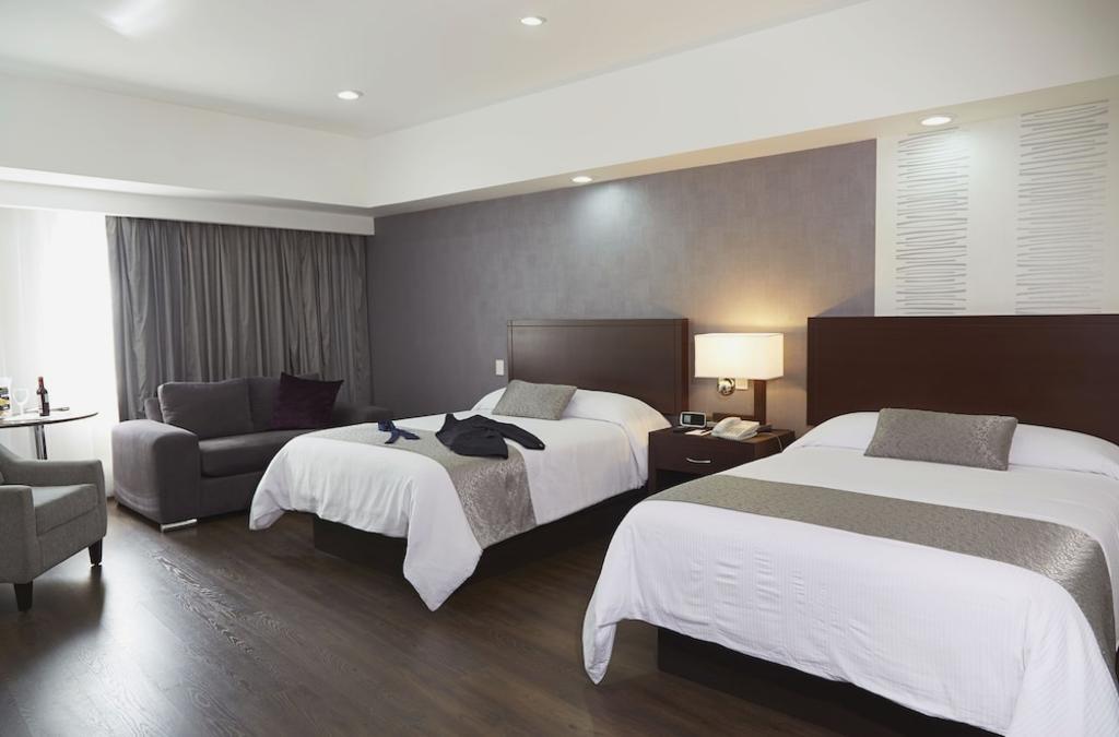 Si decides alojarte en Hotel Ejecutivo Express, te encontrarás en una fantástica zona de Guadalajara (Distrito financiero), apenas te separarán 15 minutos a pie de La Minerva y Los Arcos de Guadalajara. Además, este hotel se encuentra a 2,8 km de Cámara nacional de comercio y a 4,7 km de Expo Guadalajara. Con un gimnasio y muchas otras instalaciones recreativas a tu disposición, no te quedará ni un minuto libre. Tienes también una terraza donde sentarte a contemplar el paisaje. Tendrás un centro de negocios abierto las 24 horas, check-out exprés y periódicos gratuitos en el vestíbulo a tu disposición. Hay un aparcamiento con asistencia gratuito disponible. Aprovecha el servicio de habitaciones con horario limitado de este hotel. El desayuno completo gratuito se ofrece entre semana de 7:00 a 11:00, mientras que el horario de sábados y domingos es de 8:00 a 11:00. Te sentirás como en tu propia casa en cualquiera de las 114 habitaciones con estación de conexión para iPod y máquina de café espresso. La conexión a Internet wifi gratis te permite comunicarte con los tuyos, y en tus ratos libres podrás entretenerte con el televisión LCD de 32 pulgadas con canales por cable. El baño privado con ducha está provisto de artículos de higiene personal gratuitos y secadores de pelo. Entre las comodidades, se incluyen caja fuerte (cabe un portátil), escritorio y teléfono.