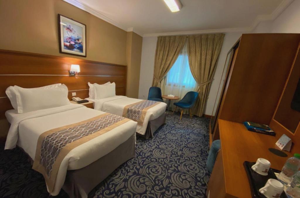 Saraya Taba Hotel de 3 estrellas es ideal tanto para viaje de negocios o de vacaciones. Tanto los turistas como los que viajan por negocios pueden disfrutar de las comodidades y servicios del hotel. Instalaciones como servicio de habitaciones 24h, Seguridad 24h, limpieza diaria, equipo de fax, fotocopiadora están disponibles para que disfrutes. Todas las habitaciones están elegantemente amuebladas y equipadas con todas las comodidades. El hotel ofrece diversas oportunidades de recreación. Personal amable, excelentes instalaciones y proximidad con todo lo que Medina tiene para ofrecer son tres inportante razones para alojarte en el Saraya Taba Hotel.