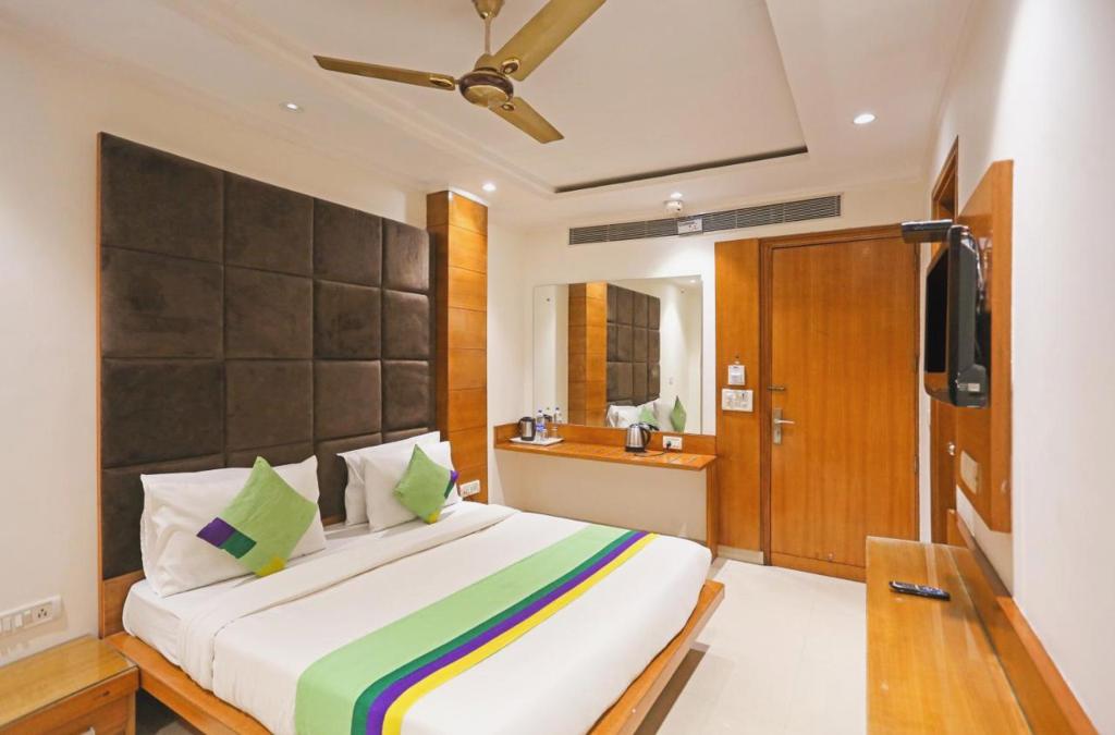 Rudraksh Plaza de Nueva Delhi está a menos de diez minutos en coche de Parque empresarial DLF Cyber City y Centro comercial Ambience Mall. Además, este hotel se encuentra a 21,9 km de Puerta de la India y a 25,2 km de Jama Masjid. Aprovecha el servicio de habitaciones las 24 horas de este hotel. Todos los días se sirve un desayuno de pago. Disfruta de una agradable estancia en una de las 19 habitaciones con televisión de pantalla plana. La conexión a Internet wifi gratis te mantendrá en contacto con los tuyos; también podrás ver tu programa favorito en el televisor con canales por cable. El cuarto de baño está provisto de ducha. Entre las comodidades, se incluyen caja fuerte, periódicos gratuitos y teléfono con y llamadas locales gratuitas.