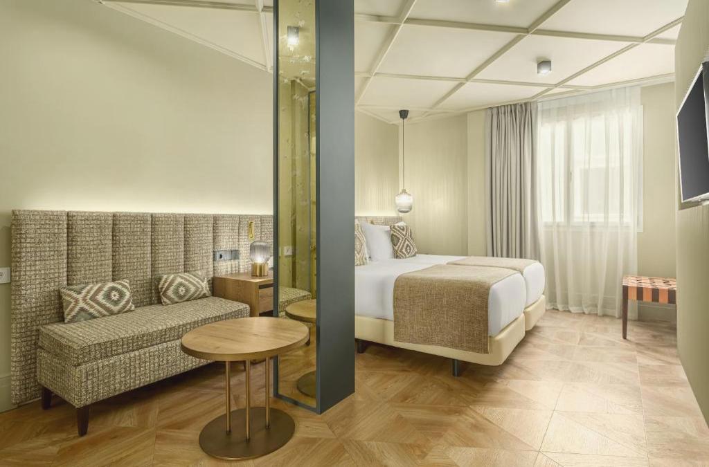 Este edificio totalmente renovado, está situado en la calle Mesones, una calle peatonal y una de las más luminosas del centro de la ciudad, al borde de la Calle Recogidas. A un paso de de las tiendas de moda más famosas, de los bares de tapas, restaurantes, teatro, y muy cerca de los monumentos más importantes: La Alhambra, la Catedral, la Capilla Real. Este hotel tiene una mezcla de colores y un mobiliario actual y diferente, con un toque de elegancia y tranquilidad. El hotel dispone de 33 habitaciones, diferentes tanto en tamaño y disposición, así como en las vistas, divididas en 3 categorías distintas dependiendo de las vistas: Standard, Ejecutivas y Ejecutivas con terraza. Además cuenta con una terraza ubicada en la última planta, desde donde se puede disfrutar de unas vistas espectaculares de la ciudad de Granada y de la Alhambra. El hotel también dispone de Internet gratuito. De diseño moderno y luminoso. Todas disponen de aire acondicionado, conexión gratuita a Internet, TV Plasma, mesa de trabajo, baño con bañera y/o ducha, secador de pelo y kit de amenities, teléfono, mini-bar y caja fuerte. Desayuno buffet gratuito hasta las 12.00 h