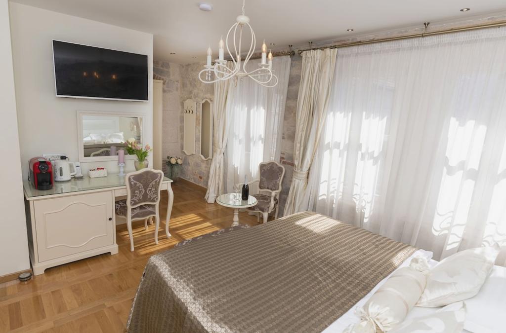 Set right in the heart of the UNESCO-listed Diocletian’s Palace, Palace Augubio offers elegant rooms housed in the Renaissance palace. Free Wi-Fi is provided. The Cathedral and Peristil Square are just steps away. Located on the 2nd floor of a building with no elevator, the rooms are decorated w... More about Set right in the heart of the UNESCO-listed Diocletian’s Palace, Palace Augubio offers elegant rooms housed in the Renaissance palace. Free Wi-Fi is provided. The Cathedral and Peristil Square are just steps away. Located on the 2nd floor of a building with no elevator, the rooms are decorated with stone wall elements and furnished with solid wood furniture. Each room is air-conditioned and features a TV with cable and satellite channels, a minibar and a safe. In the vicinity guests can enjoy numerous bars and restaurants serving local cuisine. Green market can be found 50 metres away. Marmontova shopping street and the well-known Riva Promenade can also be reached in a few steps. The nearest beach is 700 metres away. The Main Bus and Train Stations, as well as the Ferry Port are 400 metres from the Palace Augubio. Split Airport is at a disance of 25 km. Transportation and other tourist services can be arranged on site. . ((* Lo sentimos, no existe la ficha en el idioma solicitado y se proporciona en EN)