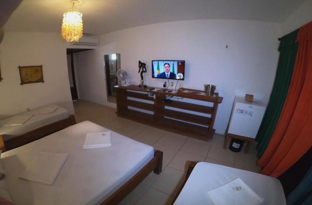 Nuestra acogedora, encantadora y cómoda posada. Estas son las primeras impresiones de aquellos que llegan a la Pousada Casa Do Angelo, en la calle de Dunas, en Jericoacoara. No teníamos una recepción, su registro se realiza en la comodidad de nuestro salón junto a la piscina. Todo esto para mantener el calor de la historia está en casa. Nuestro alojamiento tenemos 13 alojamientos, 4 suites con una capacidad máxima para cinco personas; 6 apartamentos con capacidad de hasta cuatro personas, 2 apartamentos monstruosos para hasta tres personas, más 1 chalet que comprende una habitación conjugada con cocina completa, baño con cascada, estufa, refrigerador, aire acondicionado, entre otros artículos y con capacidad para comportarse. Hasta tres personas y área privada para su mascota. WiFi a través de la comida compartida de la posada Bicicletas de grasa (tarifa extra) de pie, longboard, Sandboard, Sandboard, Mini Simmos Tablones (tarifa adicional) Mesa de Piscina Área de juego Autocámara Auto Cafetería Desayuno Aceptamos animales Aire acondicionado Split de 12mil BTUS Free WiFi Internet Ducha CALIENTE TV por Signature Sky / Minibar claro