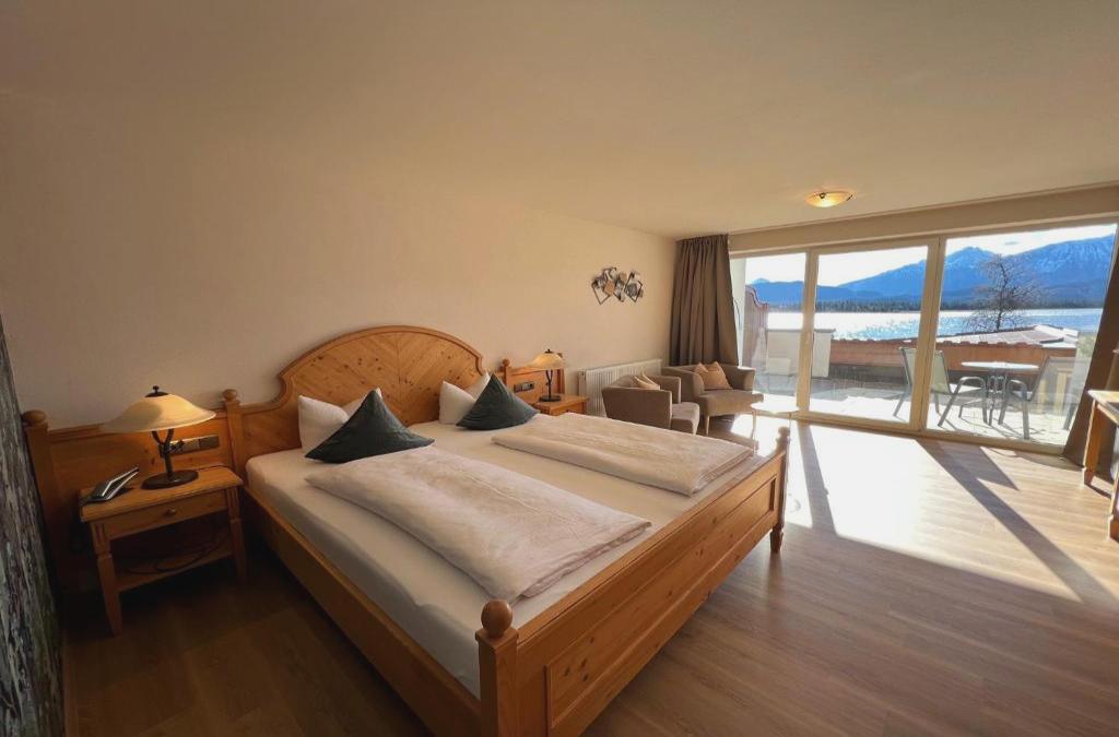 Este hotel precioso de gestión familiar está ubicado a orillas del lago Hopfensee, cerca de la frontera con Austria. Ofrece habitaciones elegantes con vistas impresionantes. El Hotel Fischer am See es un establecimiento acogedor con vistas a los Alpes y al famoso castillo Schloss Neuschwanstein. Las habitaciones son confortables y están amuebladas con buen gusto en un estilo tradicional. Muchas habitaciones tienen balón o terraza privada y las suites junior incluyen cama con dosel. Por las mañanas se sirve un desayuno bufé gratuito delicioso. Los huéspedes podrán practicar senderismo, ciclismo, alpinismo o esquí, dependiendo de la temporada. Para los que prefieran relajarse en el hotel, se ofrecen diversos masajes, como masajes de chocolate caliente. Desde el restaurante, la cafetería o la terraza se puede disfrutar de buenas vistas al lago mientras se saborea un delicioso plato regional o internacional.