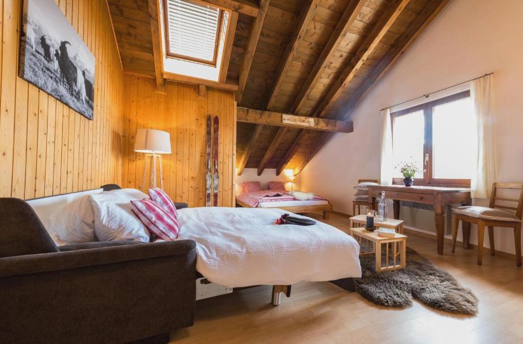 Informa a Berghotel Chäserstatt con antelación de tu hora prevista de llegada. Para ello, puedes utilizar el apartado de peticiones especiales al hacer la reserva o ponerte en contacto directamente con el alojamiento. Los datos de contacto aparecen en la confirmación de la reserva. Please note that in winter property can not be accessed by car, only on foot or by special taxi at 30 CHF round-trip ticket per person surcharge. Free parking is offered at Mühlebach parking.
