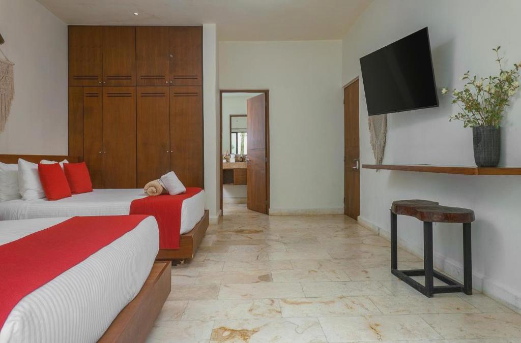 La VILLA TALARA 1 se encuentra en Tulum y ofrece alojamiento con aire acondicionado y piscina privada. Se encuentra a 6,2 km del yacimiento arqueológico de Tulum y ofrece WiFi gratuita en todas las instalaciones. La villa tiene 4 dormitorios, TV vía satélite, cocina equipada con nevera y horno, lavadora y baño con bañera o ducha. La estación de autobuses de Tulum se encuentra a 2,7 km de la villa, mientras que la estación de autobuses de las ruinas de Tulum está a 5,4 km. El aeropuerto más cercano es el aeropuerto internacional de Cozumel, ubicado a 81 km de la VILLA TALARA 1.