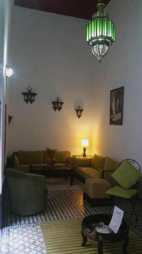 general: Ubicación del establecimiento Riad Dar Skalli está en una fantástica zona de Fez (Medina de Fes el Bal), a solo 15 minutos a pie de Madraza Bou-Inania y Universidad de Al-Karaouine. Además, este riad se encuentra a 2,3 km de Tumbas Merínidas y a 0,1 km de Museo Dar Batha.Habitaciones Te sentirás como en tu propia casa en cualquiera de las 9 habitaciones. El baño privado con ducha está provisto de artículos de higiene personal gratuitos y secador de pelo. Entre las comodidades, se incluyen cortinas opacas, además de un servicio de limpieza disponible todos los días y la posibilidad de solicitar cunas gratuitas.Servicios Con una terraza donde descansar y comodidades como conexión a Internet wifi gratis y servicio de canguro (de pago), ¡no te faltará de nada! Recorre rápida y cómodamente las principales atracciones de la zona gracias al servicio de transporte (de pago).Para comer Prueba deliciosos platos sin moverte de este riad, que cuenta con un restaurante y ofrece servicio de habitaciones con horario limitado. Se sirve un desayuno continental gratuito todos los días de 8:00 a 10:00.Servicios de negocios y otros Tendrás servicio de tintorería, servicio de recepción 24 horas y caja fuerte en recepción a tu disposición.