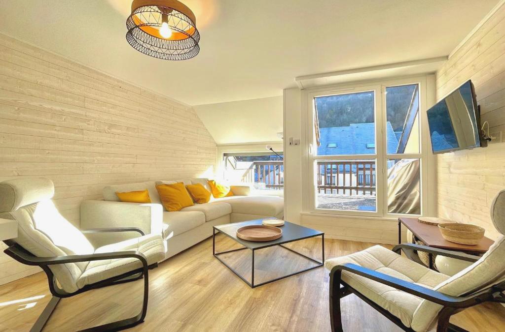 Centre village Appartement 3 chambres avec terrasse Jusqu'à 6 personnes está en Saint-Lary-Soulan y ofrece alojamiento con wifi gratis a 24 km de Col d'Aspin, a 29 km de Col de Peyresourde y a 34 km de Gouffre d'Esparros. El apartamento, que cuenta con parking privado gratis, está en una zona en la que se pueden practicar actividades como esquí y ciclismo. El apartamento cuenta con terraza y vistas a la montaña, y dispone de 3 dormitorios, una sala de estar, TV de pantalla plana, una cocina equipada con nevera y lavavajillas, y 1 baño con ducha. Para mayor comodidad, el alojamiento puede ofrecer toallas y ropa de cama por un suplemento. Se ofrece servicio de alquiler de equipamiento de esquí, un punto de venta de forfaits y guardaesquíes en el apartamento. Teleférico del Pic du Midi está a 50 km del alojamiento. El aeropuerto más cercano (Aeropuerto de Tarbes-Lourdes-Pirineos) está a 81 km del alojamiento.