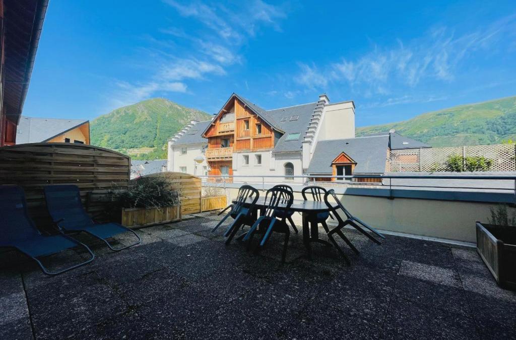 Appartement avec PISCINE INTÉRIEURE au Centre du Village, que tiene vistas al jardín, ofrece alojamiento con terraza y patio a unos 24 km de Col d'Aspin. El apartamento, que cuenta con parking privado gratis, está en una zona en la que se pueden practicar actividades como senderismo y esquí. El apartamento cuenta con balcón y vistas a la montaña, y dispone de 2 dormitorios, una sala de estar, TV de pantalla plana, una cocina equipada con nevera y lavavajillas, y 1 baño con bañera. En el apartamento, la clientela puede disfrutar de sauna. Se puede disfrutar de la piscina cubierta en Appartement avec PISCINE INTÉRIEURE au Centre du Village. Col de Peyresourde está a 28 km del alojamiento, y Gouffre d'Esparros está a 33 km. El aeropuerto más cercano (Aeropuerto de Tarbes-Lourdes-Pirineos) está a 81 km.