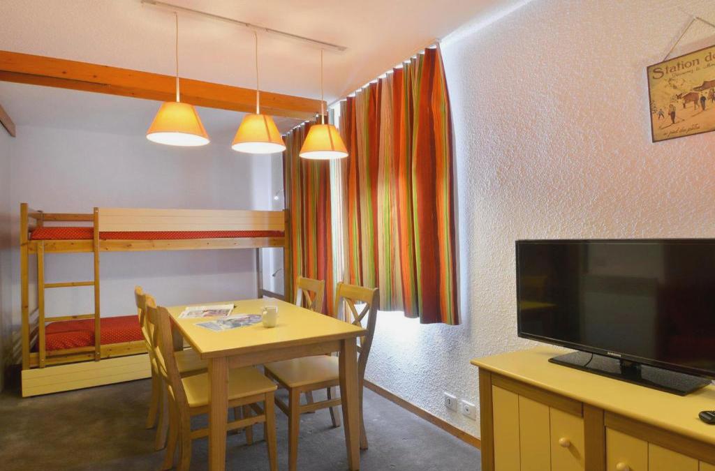 Studio Belle Plagne, 1 pièce, 4 personnes - FR-1-181-2074, que está en La Plagne Tarentaise, ofrece alojamiento con terraza. Este apartamento ofrece alojamiento con balcón. El apartamento dispone de TV. La cocina está equipada con nevera, lavavajillas y microondas, además de cafetera y hervidor. Se puede practicar esquí en la zona, y el apartamento ofrece guardaesquíes. El aeropuerto (Aeropuerto de Chambéry - Savoya) está a 121 km.