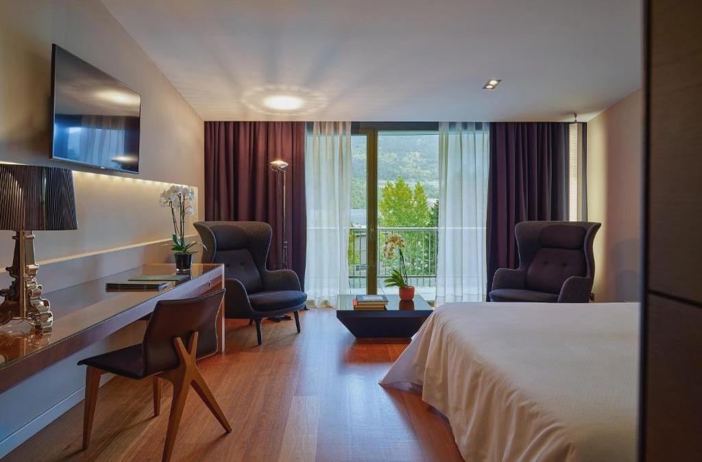 El Andorra Park Hotel es un prestigioso hotel 5 estrellas situado en el centro de Andorra la Vella, con spa, zona wellness, piscina exterior y rodeado de 15.000m2 de jardín. El objetivo principal de este hotel andorrano es ofrecerte una estancia repleta de experiencias relajantes. Cuenta con acceso directo al centro comercial Pyrénées.