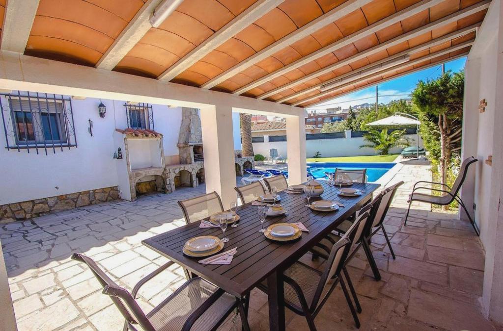Catalunya Casas Beach Vibes Villa less than 1km to town and sea!, que tiene vistas al jardín, dispone de alojamiento con patio y cafetera a unos 12 min a pie de Playa Cristal. Esta villa, que incluye piscina privada y jardín, también tiene restaurante. La villa dispone de 5 dormitorios, 2 baños, ropa de cama, toallas, TV con canales por cable, cocina totalmente equipada y terraza con vistas a la piscina. La villa ofrece servicio de alquiler de coches. Playa de L'Arenal está a 13 min a pie del alojamiento, y Platja Punta del Riu está a 1,3 km. El aeropuerto (Aeropuerto de Reus) está a 32 km, y el alojamiento ofrece servicio de traslado de pago para ir o volver del aeropuerto.