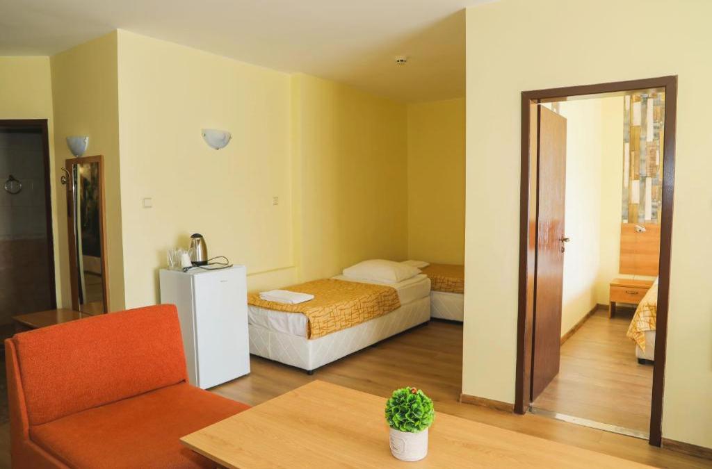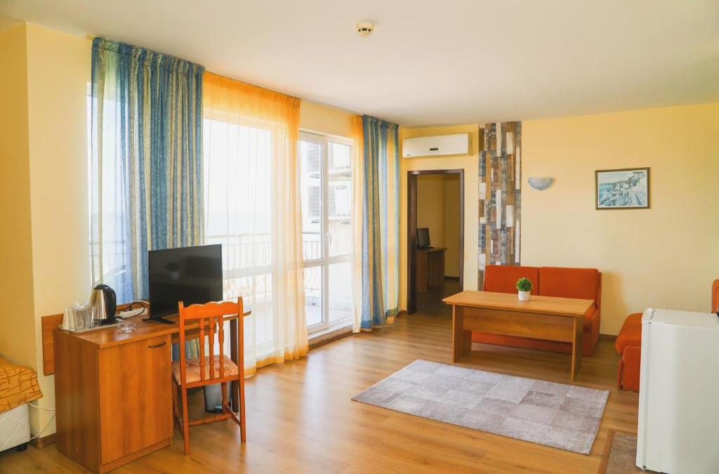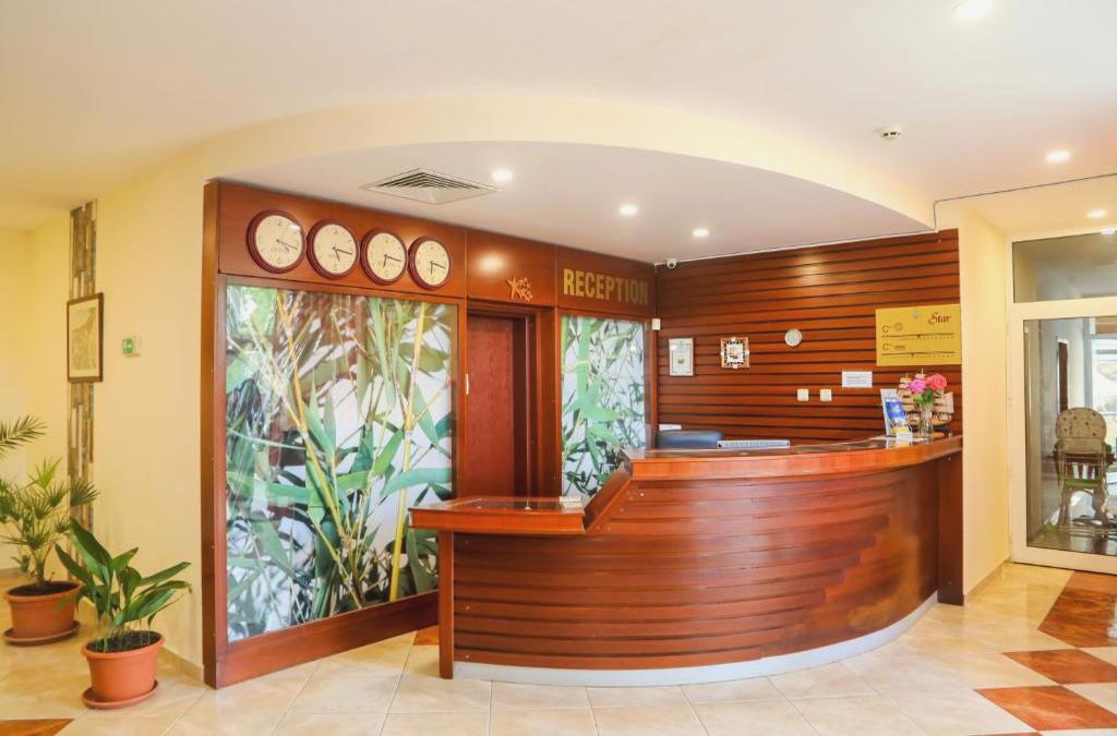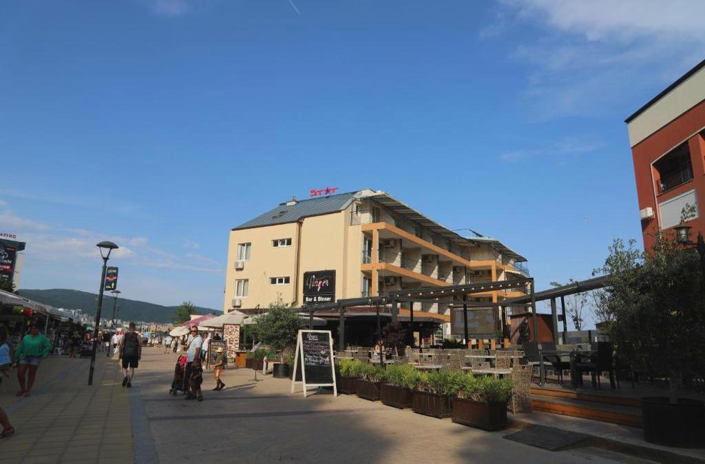 El Hotel Star es un alojamiento ubicado frente al mar, en el centro de Sunny Beach y ofrece restaurante y conexión WiFi gratuita. Las habitaciones del Hotel Star cuentan con aire acondicionado, balcón, TV por cable, nevera y baño con ducha y secador de pelo. Las instalaciones del hotel incluyen recepción abierta las 24 horas y jardín. El hotel está a solo 50 metros de una tienda de comestibles y está a la vuelta de la esquina de la calle comercial de Sunny Beach. El establecimiento está a 150 metros de la parada de autobús más cercana, a 700 metros de la playa de Majestic, a 3,5 km de la playa de Cacao y a 30 km del aeropuerto de Burgas.