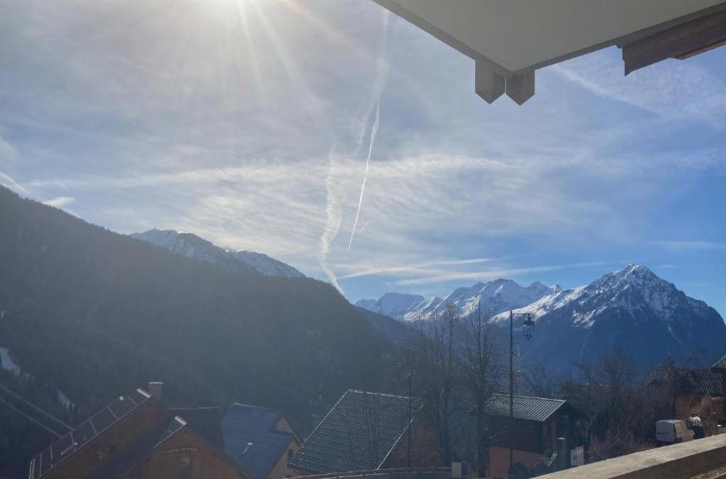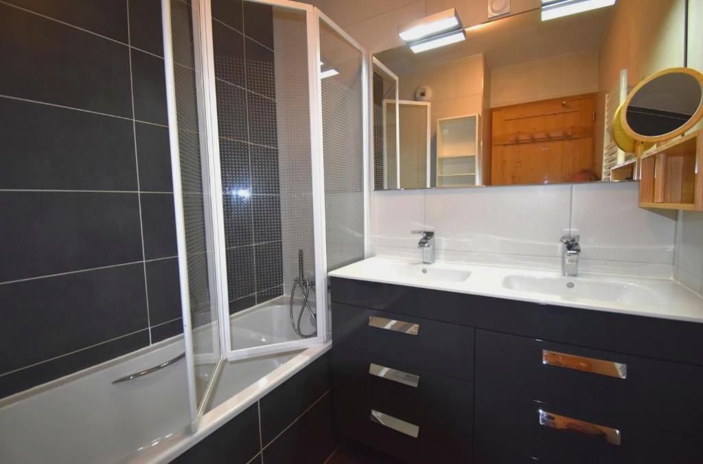 VAUJANYLOCATIONS - Amethystes B3 está en Vaujany y ofrece alojamiento con balcón y wifi gratis. El apartamento, que tiene parking privado gratis, está en una zona en la que se pueden practicar actividades como senderismo, esquí y ciclismo. El apartamento cuenta con terraza y vistas a la montaña, y tiene 2 dormitorios, una sala de estar, TV de pantalla plana, una cocina equipada con nevera y lavavajillas, y 1 baño con bañera. Hay toallas y ropa de cama en el apartamento. Hay servicio de alquiler de equipamiento de esquí y guardaesquíes en el apartamento. El aeropuerto (Aeropuerto de Grenoble – Isère) está a 99 km.