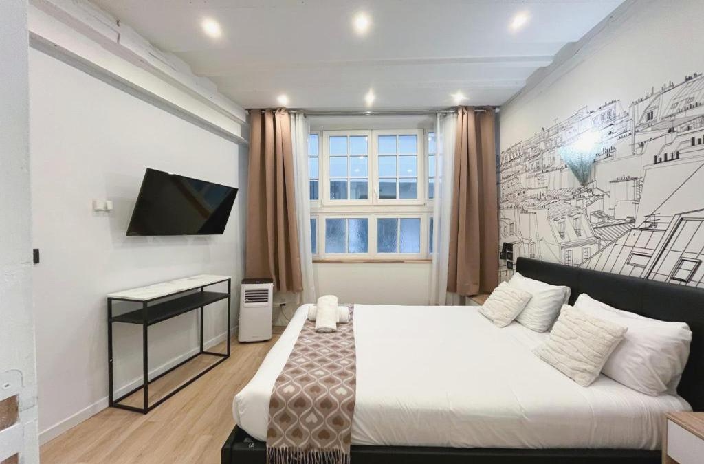 125 - Urban Montorgueil Street Art ofrece wifi gratis y se encuentra en el centro de París, a 10 min a pie de Centro Pompidou y a 1,6 km de Gare de l'Est. Este apartamento está a 15 min a pie de Sainte-Chapelle y a 1,7 km de Ópera Garnier. Este apartamento con aire acondicionado consta de 3 dormitorios, una sala de estar, una cocina totalmente equipada con nevera y cafetera, y 2 baños con ducha y secador de pelo. Hay toallas y ropa de cama en el apartamento. Cerca del alojamiento hay puntos de interés como Museo del Louvre, Gare du Nord y Catedral Notre Dame de París. El aeropuerto (Aeropuerto de París - Orly) está a 17 km.