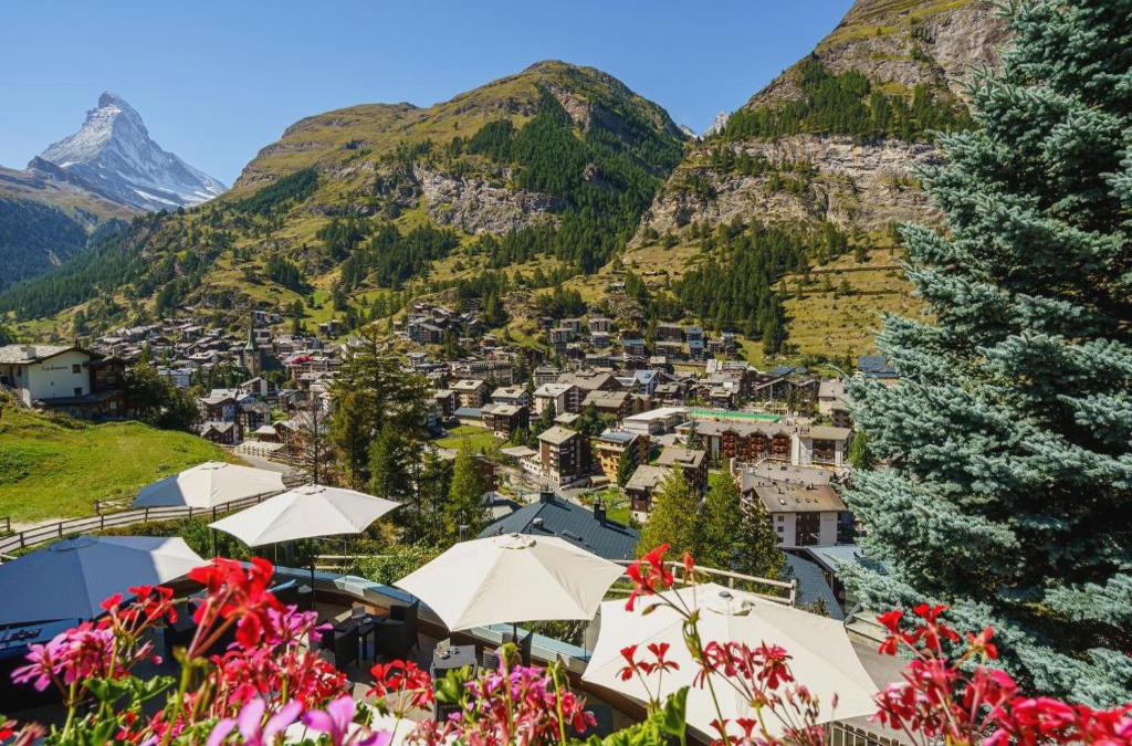 The hotel with a very quiet situation and beautiful view to the Matterhorn is right at the end of the ski-run from the Rothorn area. With an elevator the guests are in only 5 min at the Sunnegga bottom station and by the bus stop, in 7 min by the Gornergrat station. With its spectacular tunnel entrance (of Grandhotel Schönegg) with elevator just 5 min walking distance to the village. It offers fantastic views over the Matterhorn and pure relaxation. The hotel offers among its facilities a restaurant, a bar and a wellness area with whirlpool, sauna and swimming pool.