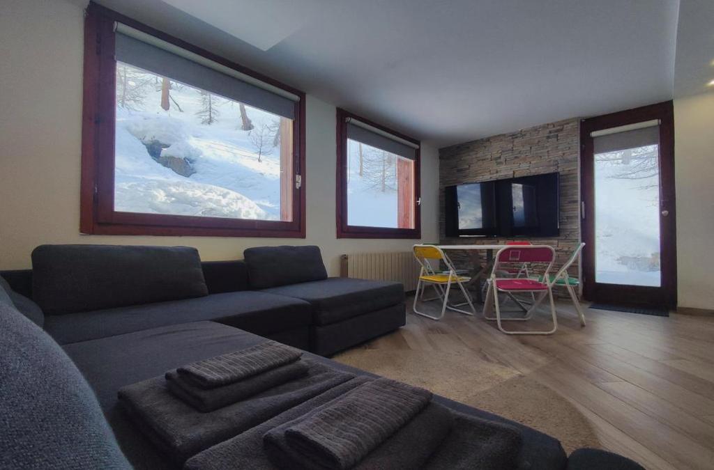 Aqua Apartment - very Ski In & Ski Out CIR 0436 está en Breuil-Cervinia, cerca de Teleférico de Plateau Rosà, y dispone de alojamiento con jardín, alquiler de equipamiento de esquí, un punto de venta de forfaits, restaurante y bar. Tiene acceso a pie de pista, vistas al jardín y wifi gratis en todo el alojamiento. El apartamento dispone de una terraza y vistas a la montaña e incluye 1 dormitorio, sala de estar, TV de pantalla plana vía satélite, cocina equipada y 1 baño con bidet y ducha. Hay toallas y ropa de cama en el apartamento. Se puede practicar senderismo y esquí en la zona, y hay casino en el propio alojamiento. Pequeño Cervino está a 9 km del alojamiento. El aeropuerto (Aeropuerto de Turín) está a 114 km, y el alojamiento ofrece servicio de traslado de pago para ir o volver del aeropuerto.