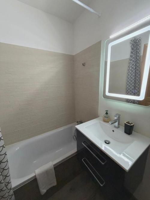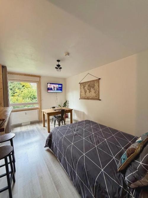 Castel de Roches ofrece casino y vistas a la montaña. Está en Saint-Gervais-les-Bains, a 39 km de Teleférico de Mont-Blanc y a 46 km de Halle Olympique d'Albertville. El alojamiento ofrece vistas al jardín y está a 49 km de Rochexpo y a 5 km de Le Valleen Gondola. El apartamento cuenta con balcón y vistas a la ciudad, y tiene 1 dormitorio, una sala de estar, TV de pantalla plana, una cocina equipada con nevera y microondas, y 1 baño con bañera. Hay toallas y ropa de cama en el apartamento. Se puede practicar senderismo y esquí en los alrededores, y también hay servicio de alquiler de equipamiento de esquí, un punto de venta de forfaits y acceso a pie de pista en el propio alojamiento. Estación de tren Montenvers - Mer de Glace está a 24 km del alojamiento, y Aiguille du Midi está a 28 km.