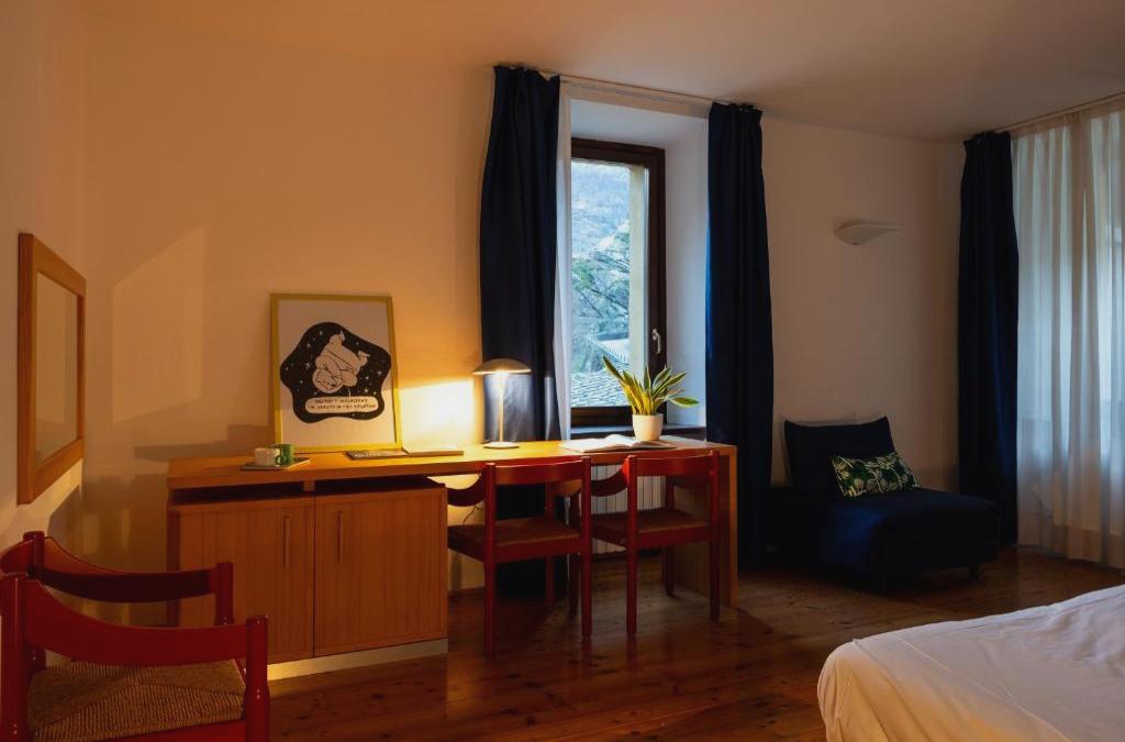 Posizionato a 25 km da Miniera d'Oro Chamousira Brusson, MAB - Maison des Artistes Bard offre alloggi a 3 stelle a Bard e presenta una sala comune, una terrazza e un bar. A circa 37 km da Chiesa Parrocchiale di San Martino, l'hotel offre il WiFi gratuito e dista 40 km da Castello di Masino. L'alloggio è interamente non fumatori ed è ubicato a 26 km da Castello di Graines. Presso questo hotel, le camere sono provviste di una scrivania e una TV a schermo piatto. Il bagno privato comprende bidet, set di cortesia e asciugacapelli. Tutte le unità presentano una cassaforte. A colazione troverete opzioni a buffet, italiane o vegetariane. Gli ospiti di MAB - Maison des Artistes Bard potranno svagarsi con varie attività a Bard e dintorni, come l’escursionismo e il ciclismo. Forte di Bard è a 1 km da questa struttura, mentre Casino de la Vallèe si trova a 25 km di distanza. Aeroporto di Torino si trova a 65 km dalla struttura.