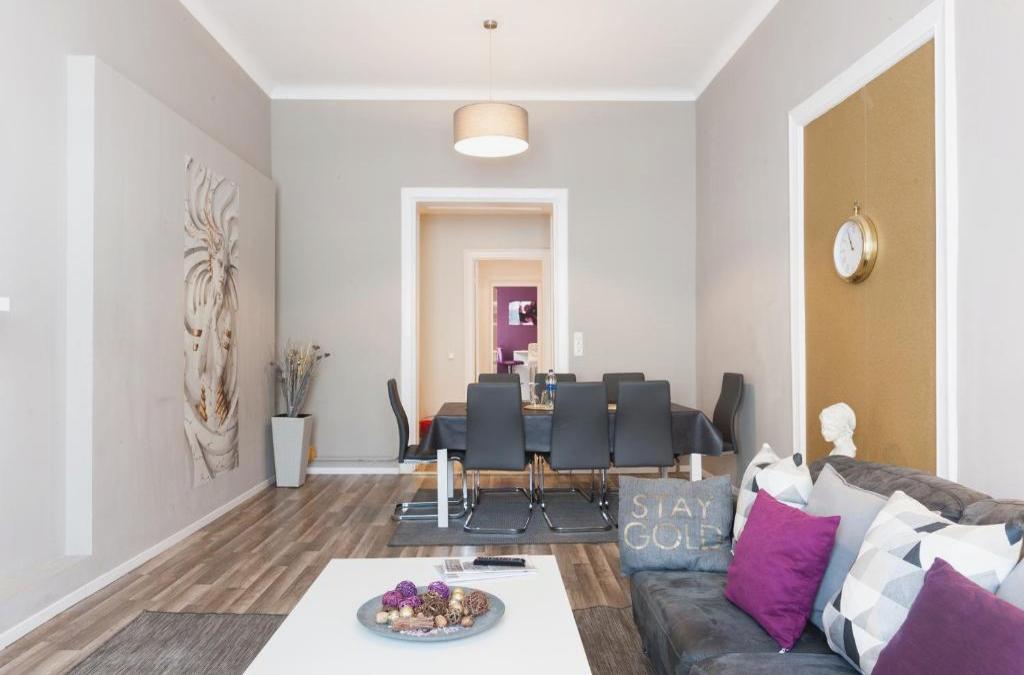 Ubicato a Berlino, a 3,9 km da Stazione Metro Zoologischer Garten, l’alloggio Dilo Apartments - MyGold Apartment 120 SQM propone una sala comune, il WiFi gratuito e una cucina in comune. In questo appartamento avrete accesso a un balcone. Questo appartamento con terrazza e vista sulla città offre 2 camere da letto, un soggiorno, una TV a schermo piatto, una cucina con frigorifero e lavastoviglie e 1 bagno con doccia. Presso questo appartamento troverete asciugamani e lenzuola tra i servizi offerti. Viale Kurfürstendamm è a 4,3 km da questo appartamento, mentre Berliner Philharmoniker si trova a 4,8 km dalla struttura. Aeroporto di Berlino-Brandeburgo Willy Brandt si trova a 20 km di distanza.