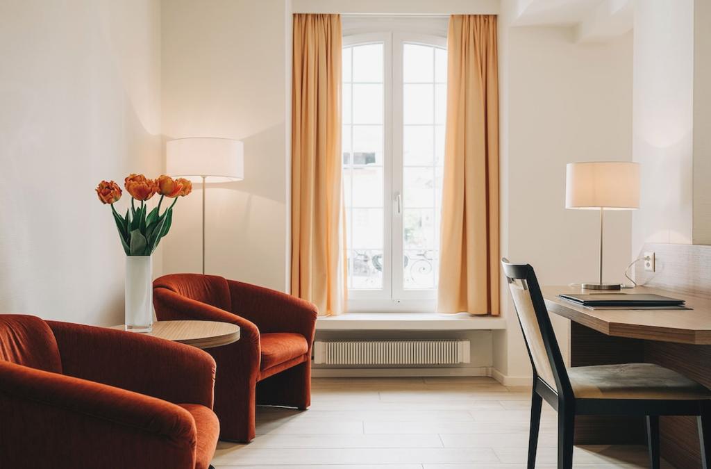 Hotel Krone, situato nel cuore del centro storico di Thun, vicino all'Aare e al castello. Tra i punti di forza figurano la cortesia del personale, le camere pulite e confortevoli, la colazione continentale e la posizione centrale. Alcuni suggeriscono di migliorare la varietà della colazione e le dimensioni delle camere. Ideale per soggiorni di breve e media durata, amanti della storia e della comodità. Perfetto per chi cerca un buon equilibrio tra qualità e prezzo. Un'ottima opzione da considerare a Thun per una piacevole esperienza nelle Alpi svizzere!