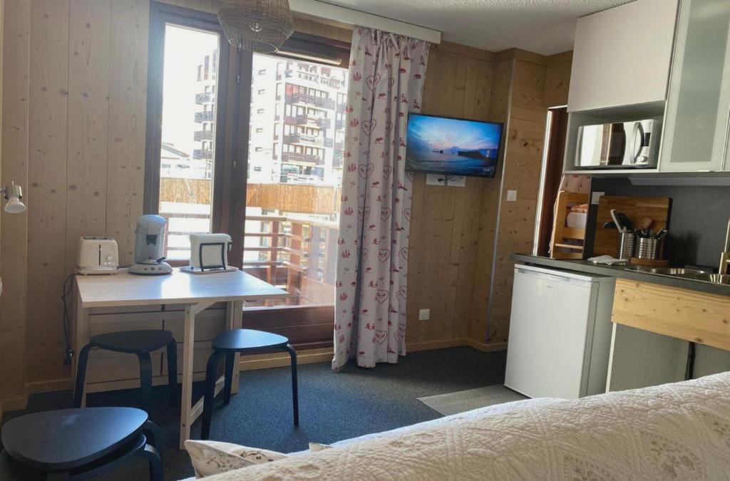 Situato a Tignes, a pochi passi dal comprensorio sciistico Ecole du Ski Francais Val Claret e a 1,4 km da Tignes/Val d'Isère, in una zona ideale per lo sci, il Beau studio cabine ricarait à neuf. Sistemazione con vista sulla città e balcone. L'appartamento presenta 1 camera da letto, una TV a schermo piatto e un angolo cottura completamente attrezzato con lavastoviglie, microonde, lavatrice, frigorifero e forno. Ecole du Ski Francais Tignes. Le Lac dista 1,4 km. L'Aeroporto più vicino è Chambéry-Savoie, a 82 km da Beau studio cabine refait à neuf, Val Claret Curling.