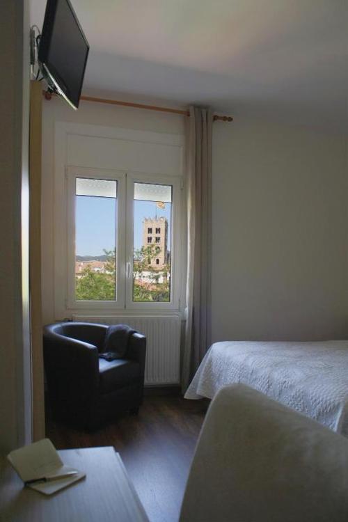 Situato a 250 metri dal Monastero di Santa María, posto nel centro di Ripoll, il Trobada Hotel è una struttura a conduzione familiare, ubicata nei pressi di un percorso ciclabile Vía Verde. Offre un deposito per biciclette e bici a noleggio in loco. Le semplici camere dell'Hotel Trobada dispongono di TV a schermo piatto, connessione Wi-Fi gratuita, viste sulle montagne e bagno privato con asciugacapelli. La caffetteria del Trobada allestisce una colazione a buffet fatta in casa, preparata con ingredienti stagionali locali; a pranzo e a cena vi attendono invece piatti tradizionali catalani, preparati dai proprietari. L'incantevole terrazza all'aperto è la cornice ideale per consumare i vostri pasti o sorseggiare una bevanda. Adiacente a un parcheggio gratuito, l'albergo presenta un garage dove potrete lasciare la vostra moto senza alcun costo aggiuntivo. Il personale del banco escursioni dell'hotel sarà lieto di fornirvi informazioni sulla regione e sconti per i viaggi in treno verso la Valle di Núria. Ubicate nelle vicinanze, le splendide valli di Ribes e Camprodon sono perfette per le escursioni; la zona vulcanica di La Garrotxa è un'altra rinomata destinazione per gli amanti delle camminate.