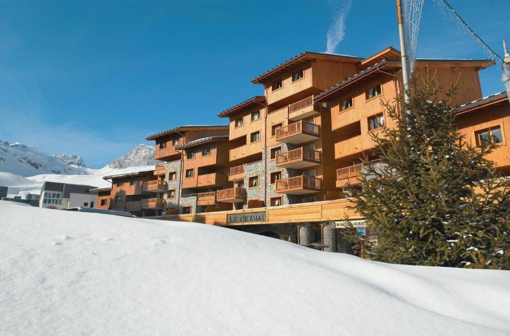 Il Résidence CGH Le Nevada 5* è stato costruito (2006) con materiali locali (pietra e legno) e con molto buon gusto e, come accade in quasi tutte le località francesi, contrasta con il resto degli edifici antichi di Tignes Val Claret. Sia nelle aree comuni che negli appartamenti, la decorazione in legno trattato conferisce un aspetto rustico e antico, mentre i toni marroni e verdastri dei tessuti, della tappezzeria e dei tappeti rendono questa struttura un luogo molto accogliente. La struttura dispone anche di una piscina riscaldata, acuzzi, sauna, bagno turco e palestra.