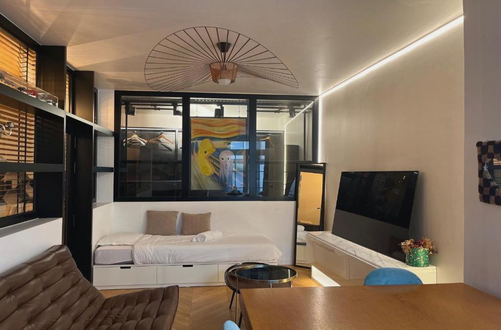 In the 3rd arr. District of Paris, close to Notre Dame Cathedral, Design appartment in the marais features free WiFi and a washing machine. Guests staying at this apartment have access to a fully equipped kitchen. The property is 700 metres from Pompidou Centre, and within 2.2 km of the city centre. The spacious apartment includes 2 bedrooms and a living room with a flat-screen TV. The accommodation is non-smoking. You can play billiards at the apartment. Popular points of interest near Design appartment in the marais include Louvre Museum, Sainte-Chapelle and Gare de l'Est. Paris - Orly Airport is 18 km away.