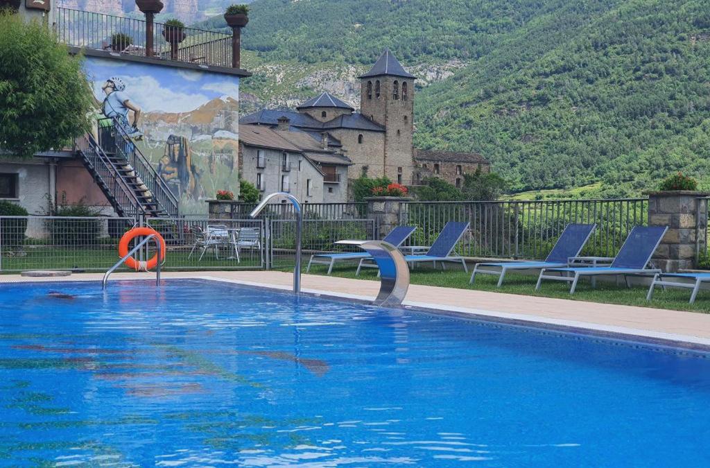 Questo hotel a conduzione familiare si trova all'ingresso del Parco Nazionale di Ordesa e Monte Perdido, nei Pirenei aragonesi. Offre viste sulle montagne e dispone di una piscina all'aperto, una vasca idromassaggio e una palestra. Le camere della Villa de Torla sono elegantemente arredate e dispongono di riscaldamento centralizzato, TV satellitare, asciugacapelli e telefono. I bagni dispongono di vasca o doccia e set di cortesia. Inoltre, è disponibile la connessione Wi-Fi gratuita in tutte le aree. Questo hotel offre una zona lounge e bar con camino e TV, un tavolo da ping pong e un'area per far giocare i bambini. La terrazza e il giardino regalano viste sul paesaggio dei Pirenei. Il ristorante della Villa de Torla propone la colazione a buffet e piatti aragonesi. Se lo desideri, puoi richiedere anche pranzi al sacco. Nei dintorni è disponibile un parcheggio pubblico gratuito. Il confine francese si trova a soli 50 km e la stazione sciistica di Panticosa è raggiungibile in 45 minuti di auto.
