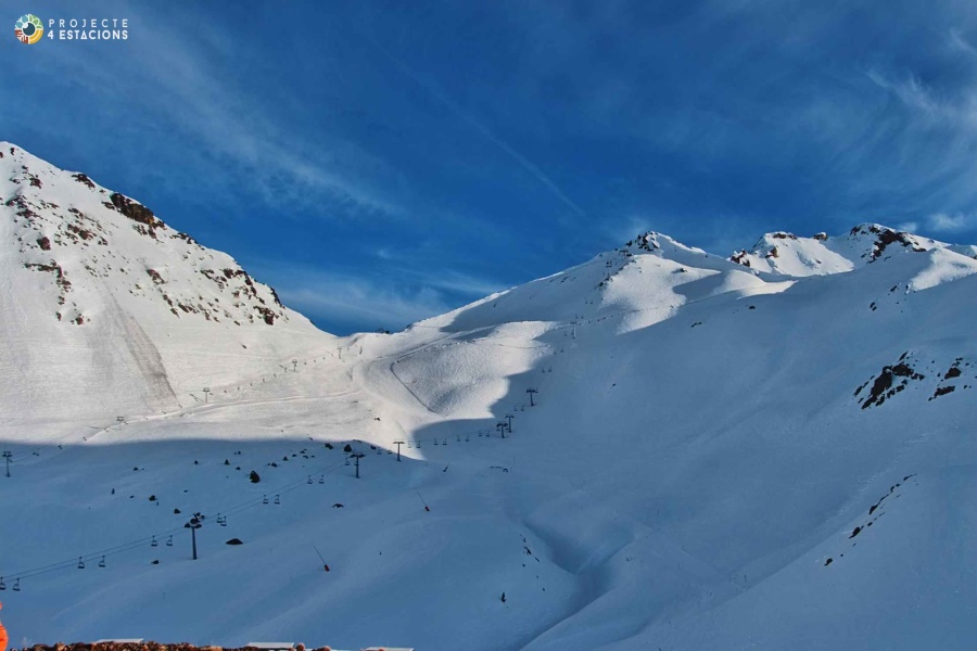 Preparati a goderti la neve e lo spettacolo naturale che offre la stazione di Boí Taüll. La sua altezza minima è di 2.020 m e si trova nella Pla de Vaques, mentre il livello massimo , Puig Falcó, si trova a 2.751 m . Ti assicuriamo che vale la pena salire fino al punto più alto, poiché godrai di viste incredibili come quelle offerte dai Pallars Jussà e dal Pic de l'Orri.