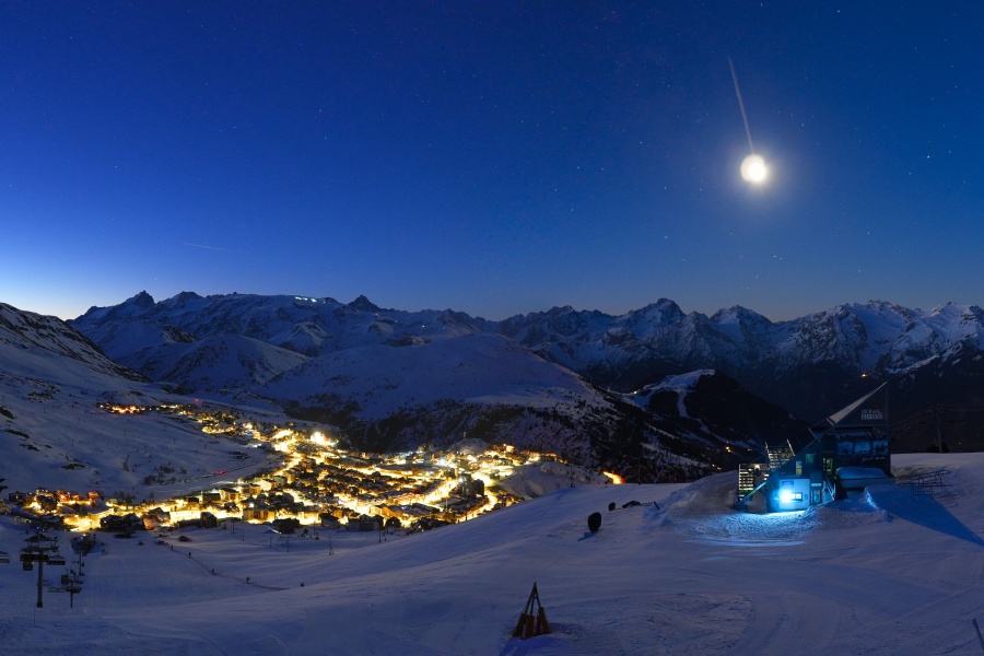 Conocida como la "Isla del Sol", Alpe d’Huez es una de las estaciones de esquí más soleadas de los Alpes franceses, ubicada en el macizo de Grandes Rousses. Este complejo esquiable cuenta con una extensa variedad de pistas para todos los niveles y unas vistas impresionantes del valle de Romanche y las cumbres circundantes. La estación, situada a 1,860 metros de altitud, ofrece 250 km de pistas y la famosa pista negra de Sarenne, de 16 km de longitud, una de las más largas del mundo. Alpe d’Huez es un destino excelente tanto para quienes desean un día completo de esquí como para quienes buscan actividades alternativas y un entorno vibrante.