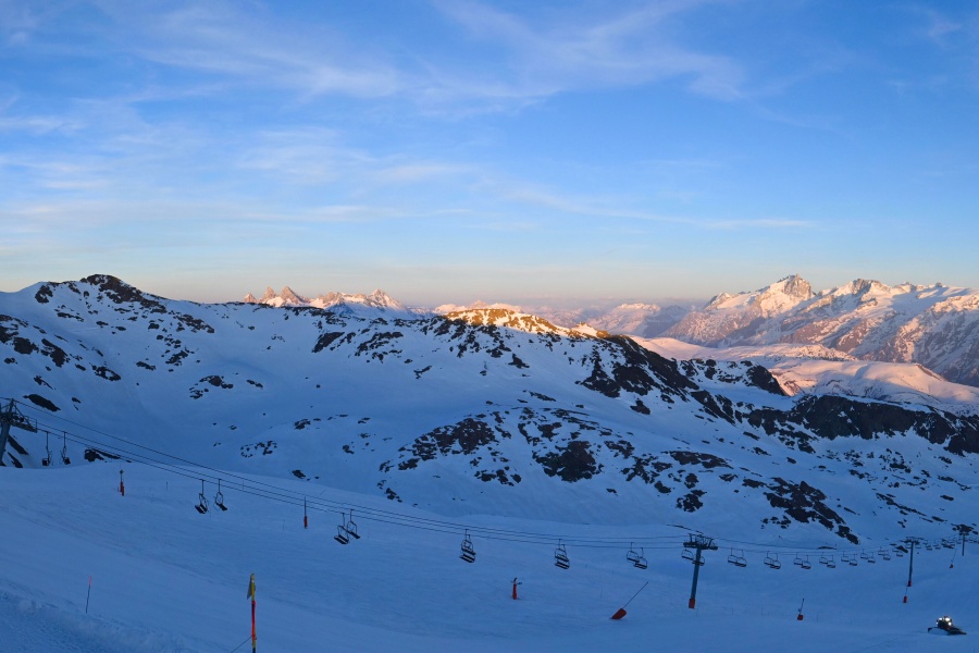 Conocida como la "Isla del Sol", Alpe d’Huez es una de las estaciones de esquí más soleadas de los Alpes franceses, ubicada en el macizo de Grandes Rousses. Este complejo esquiable cuenta con una extensa variedad de pistas para todos los niveles y unas vistas impresionantes del valle de Romanche y las cumbres circundantes. La estación, situada a 1,860 metros de altitud, ofrece 250 km de pistas y la famosa pista negra de Sarenne, de 16 km de longitud, una de las más largas del mundo. Alpe d’Huez es un destino excelente tanto para quienes desean un día completo de esquí como para quienes buscan actividades alternativas y un entorno vibrante.