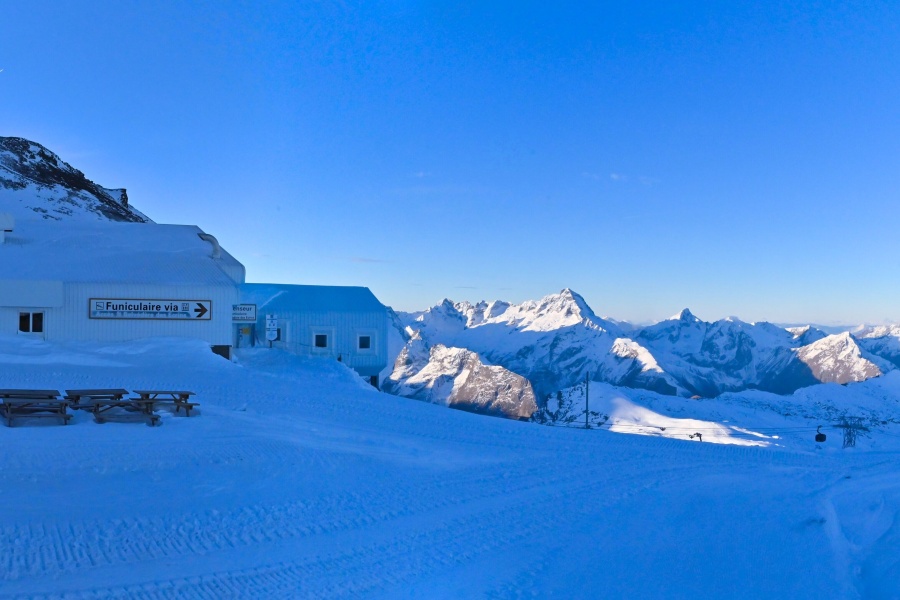 La última zona es el glaciar de Mont-de-Lans (3.200 m a 3.570 m), con pistas fáciles, ideales para que aprendas con una nieve inmejorable, disfrutando de unas vistas fabulosas. Desde la cota alta de la estación, puedes descender hasta el punto más bajo cubriendo un desnivel continuo de más de 2.200 m.