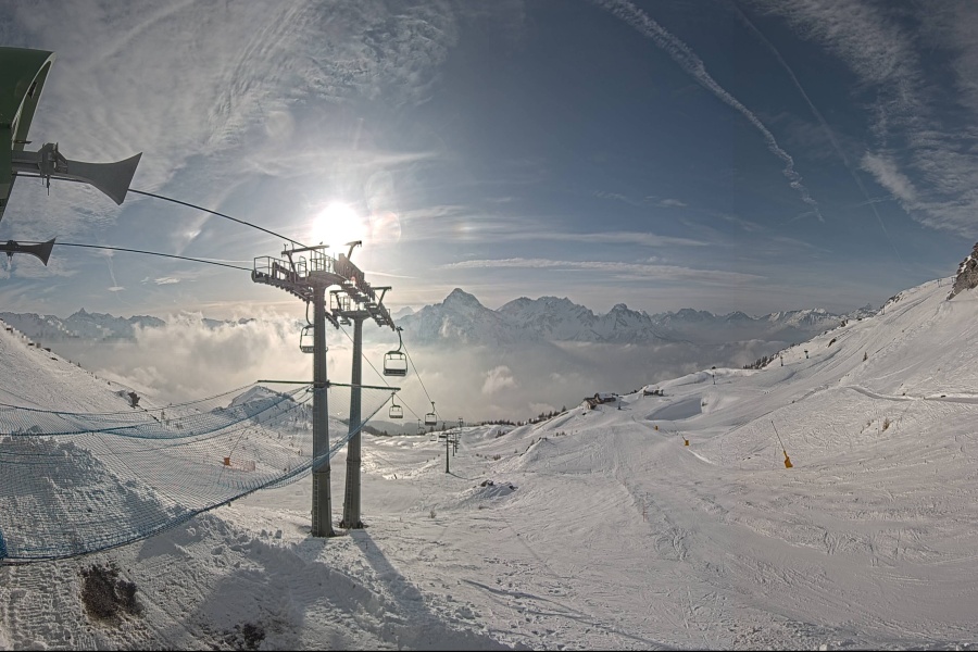 Tendrás la posibilidad de esquiar de noche en una pista olímpica iluminada, así como de disfrutar de día las vistas increíbles de los Alpes desde su pico más alto y dejarte llevar por sus largas pistas. Conforme desciendes por los trazados sinuosos de la montaña, verás como sus laterales se van poblando de árboles y terminarás la pista serpenteando entre ellos.