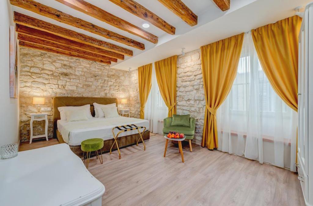Com localização central em Split, Princ Heritage Rooms fica a apenas alguns passos de Peristyle e de Palácio de Diocletian. Esta pensão de 4 estrelas está a 0,1 km (0,1 mi) de Split Riva Promenade e a 0,1 km (0,1 mi) de Templo de Júpiter. Com uma esplanada onde pode descansar e comodidades como ligação gratuita à Internet Wi-Fi e assistência ao turista (compra de bilhetes), não lhe faltará nada! Você terá caução para bagagem e armários à sua disposição. O serviço de traslado do aeroporto (ida e volta) é oferecido por uma taxa (disponível 24 horas). Você se sentirá em casa em qualquer um dos 5 quartos com ar condicionado e TV de tela plana. As camas possuem colchões de espuma com sistema de memória e lençóis italianos Frette para uma boa noite de descanso. A conexão Wi-Fi gratuita à Internet o manterá em contato com seus entes queridos; você também pode assistir seu programa favorito na TV com canais a cabo. Os banheiros privativos com chuveiros possuem chuveiros com efeito de chuva e produtos de toalete de cortesia.