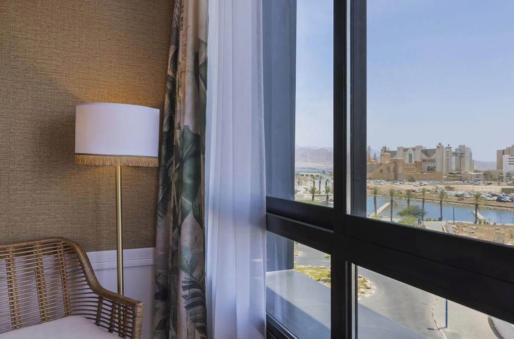 O hotel situa-se a cerca de 10 minutos a pé da praia, de alguns restaurantes e de um supermercado. O centro da cidade de Eilat pode ser alcançado de táxi em 10-15 minutos. Este hotel urbano, localizado junto ao mar e entre duas lagoas azuis, oferece um total de 84 suites, quartos familiares e quartos normais, todos equipados com as mais recentes comodidades para proporcionar aos hóspedes um ambiente íntimo, perto de todas as atracções de Eilat. As instalações disponíveis neste complexo em estilo de clube incluem recepção e serviço de check-out 24 h por dia, cofre, guichet para câmbio monetário, bar e elevador. O acesso à Internet (apenas no átrio), o serviço de quartos e o serviço de lavandaria estão também disponíveis mediante pagamento de uma taxa extra. Os quartos são simples e modestos em tamanho, mas muito confortáveis. Todos dispõem de casa de banho privativa compacta com duche, banheira e secador de cabelo. As comodidades incluem cama de casal, televisão via satélite/cabo, cofre, um prático frigorífico pequeno, máquina de café/chá e comodidades para engomar. Outras características padrão incluem ar condicionado, aquecimento central e uma varanda ou terraço. O hotel oferece uma modesta piscina exterior com uma pequena cascata, uma área de natação para crianças e um bar de praia. Os hóspedes também podem exercitar-se no ginásio do hotel. Um buffet rico e variado oferece pratos autênticos com os aromas da cozinha caseira. Estes incluem deliciosos pequenos-almoços israelitas e noites de churrasco à volta da piscina. A sala de jantar principal fica no piso térreo e está decorada em azul e verde.