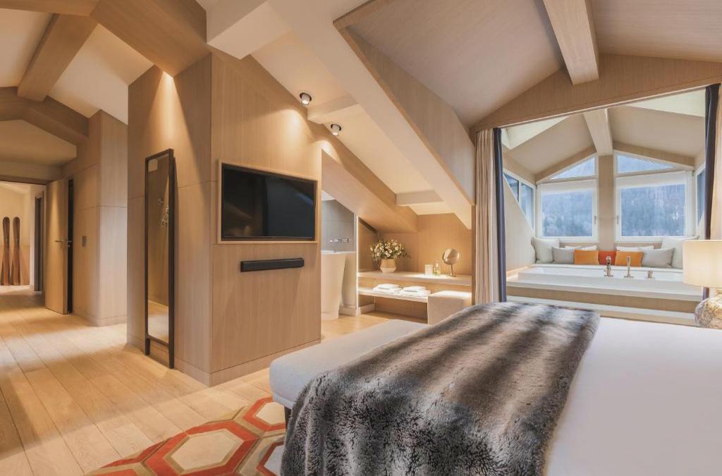 O hotel está localizado em um pequeno parque encantador no centro da vila com vista para o Mont Blanc. Os quartos são de tamanho médio e bem decorados com cores claras. As acomodações estão em boas condições. O restaurante é muito agradável e decorado em estilo rural de montanha. Tem uma lareira bastante grande. O hotel é um moderno hotel de estilo campestre de montanha, muito popular em Chamonix. O lobby é pequeno com salões confortáveis, lareiras e um bar muito acolhedor. O hotel oferece ônibus privativos para os teleféricos. No geral, é uma boa propriedade à moda antiga. 08/09