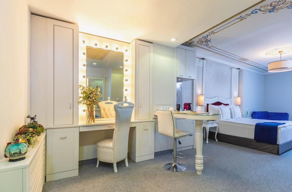 Este elegante hotel, localizado no coração da antiga Istambul, está a uma curta distância das principais atracções em redor da Mesquita do Sultão Ahmed. O aeroporto de Istambul Atatürk fica a cerca de 15 km ea estação de Sultanahmet a cerca de 700 m das portas do hotel. Este hotel boutique familiar foi construído em 2010 e oferece um total de 32 quartos, com conforto e estilo no coração da cidade. Os hspedes so recebidos no lobby com uma recepo 24 horas e servio de check-out, onde eles tambm podem se beneficiar do servio de troca de moeda, cofre e elevador para os quartos. Com ar condicionado em todas as dependências, outras áreas comuns do hotel são a cafeteria, bar, restaurante e terraço na cobertura, com vistas incríveis, além da sala de TV, instalações para conferências e luxuoso business center. O acesso Wi-Fi à Internet está disponível em todo o edifício e outros serviços incluem serviços de quarto e de lavandaria, ambos por uma taxa. Os hspedes que chegam de carro podem fazer uso do estacionamento do hotel (para uma taxa) ou garagem. Os quartos estão perfeitamente equipados e espaçosos. Incluem camas extra grandes ou 2 camas de solteiro. Todas as acomodações dispõem de banheiro privativo com banheira de hidromassagem ou chuveiro com efeito de chuva, bem como secador de cabelo. Graças à geladeira pequena e à cafeteira / chaleira, você pode desfrutar de refrigerantes e lanches leves. As características padrão de todas as acomodações incluem telefone com discagem direta, conjunto para engomar, TV LCD, estação de iPhone, conexão à Internet e cofre para guardar objetos de valor. O ar condicionado e o aquecimento garantem o máximo conforto. Todos os quartos possuem varanda ou terraço. O hotel tem o seu próprio spa, que inclui um ginásio, banheira de hidromassagem, sauna e serviço de massagens (taxa extra).