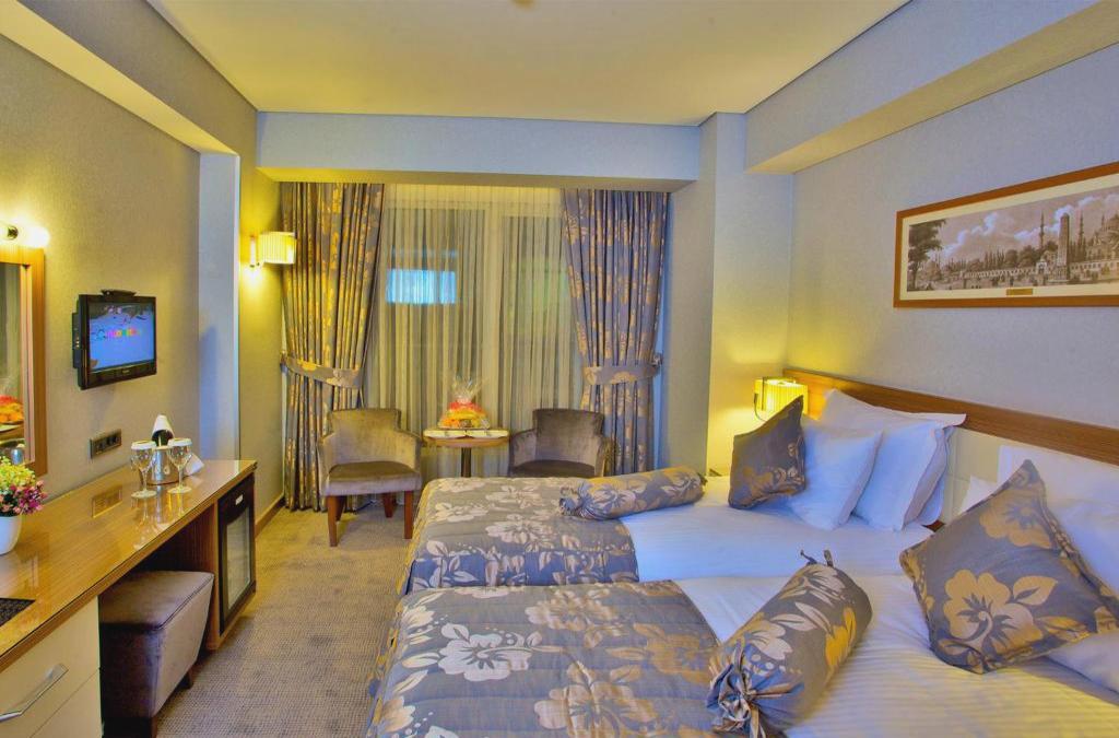 O hotel tem uma localização muito conveniente, a menos de 200 m do Grande Bazar, com os pontos turísticos de Sultanahmet, como a Mesquita Azul, a Hagia Sophia e o Palácio Topkapi, a 1 km do hotel. a uma distância confortável para viajar a pé. Os hóspedes encontrarão os restaurantes e bares mais próximos a uma caminhada de 5 a 7 minutos. Existem paragens de transportes públicos a cerca de 150 m do hotel ea estação de comboios de Sirkeci fica a cerca de 2,5 km. O Mar de Mármara fica a 800 metros do hotel. A Praça Taksim fica a cerca de 3,8 km de distância. O Aeroporto Internacional Atatürk fica a cerca de 17 km de distância. O Aeroporto Internacional Sabiha Gökçen fica a cerca de 47 km de distância. O hotel, construído em 2010, ocupa um canto e oferece acomodações confortáveis em estilo boutique. Existe um hall de entrada e uma planta para café da manhã, bem como um restaurante, cafetaria e um pequeno bar. Conexão Wi-Fi à Internet e estacionamento gratuitos são fornecidos no hotel. Outras facilidades deste estabelecimento climatizado incluem recepção e serviço de check-out sob 24 h, cofre, guichet para câmbio monetário, bengaleiro, elevador e sala de televisão.. Servio de quartos e servio de lavandaria (ambos por uma taxa) tambm so oferecidos. Os quartos são agradáveis, confortáveis e bem mobilados. Eles têm acesso gratuito à Internet Wi-Fi, TV LCD e canais por satélite / cabo, janelas insonorizadas, cofre e minibar (taxa extra). Outras amenidades incluem cama de casal, telefone com ligação directa e ar condicionado controlado individualmente e aquecimento central. A casa de banho privativa inclui um chuveiro e um secador de cabelo. Será servido diariamente um buffet de pequeno-almoço continental e jantar em sistema de buffet, bem como ementas ou à la carte.