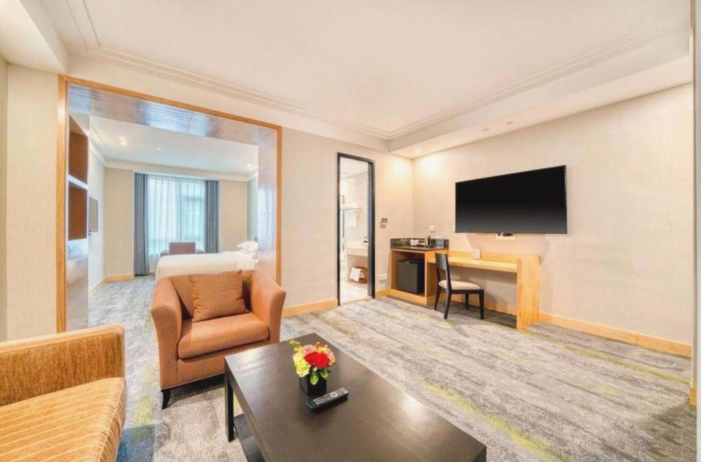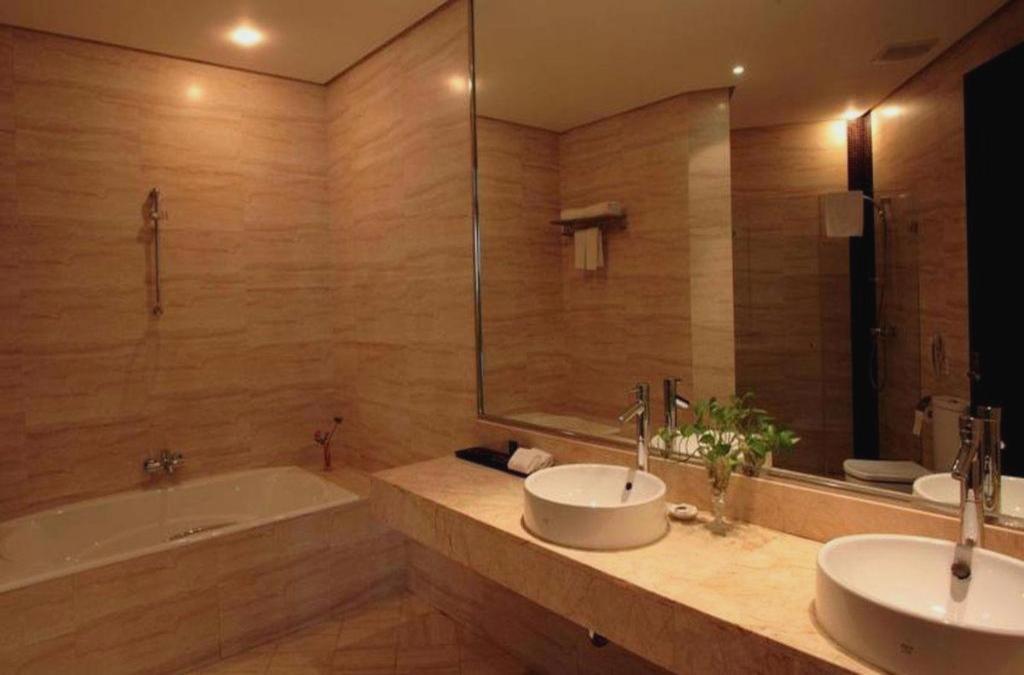 O hotel urbano situa-se apenas a 5 km do centro da cidade. Fica a apenas 10 minutos da estação de trem de Xangai e a 35 minutos do aeroporto de Honggiao. Este hotel goza de uma localização privilegiada e compreende um total de 97 quartos espaçosos. Sua decoração é dominada por diferentes tipos de pedra e pinturas a óleo modernas e seus serviços incluem serviço de quarto e check-out 24 horas, cafeteria ao lado da baía, sala de xadrez e um salão de beleza onde são oferecidas massagens nos pés. Se você estiver viajando a negócios, terá à sua disposição instalações para conferências, serviços postais e serviço de lavanderia. Este estabelecimento oferece uma seleção de acomodações que inclui: Quartos King Deluxe, Suítes Administrativas, Suítes Deluxe, Quartos Duplos Individuais Deluxe, Quartos Standard, Quartos King Superiores e Quartos Duplos Superiores Individuais. Todos eles estão equipados com conexão de banda larga à Internet, telefone com discagem direta nacional e internacional, secador de cabelo, TV via satélite / a cabo, aparelhagem hi-fi, ar condicionado e frigobar. Nas instalações você encontrará um salão de beleza, serviço de massagem e sala de jogos com xadrez e cartas para relaxar.