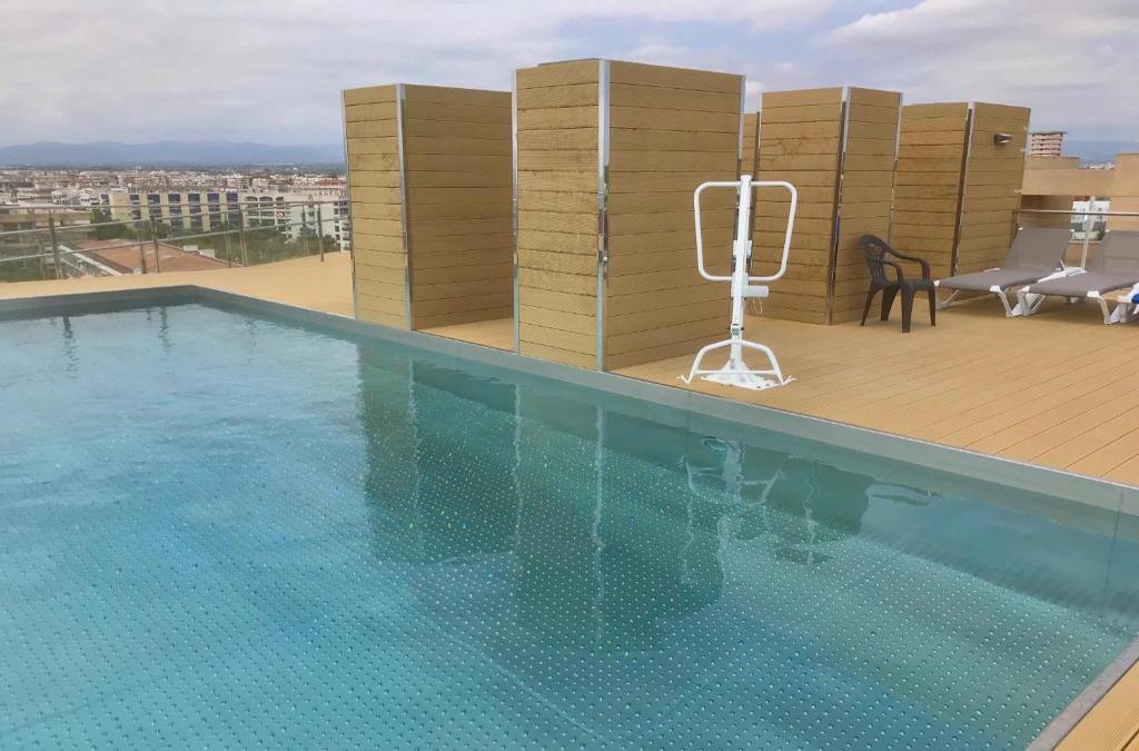 Apartament de luxe con piscina encontra-se no centro de Salou e tem acomodações com uma piscina exterior, vista da cidade, um jardim e um terraço. O alojamento está a 6 minutos a pé de Praia de Levante, e os hóspedes beneficiam de estacionamento privado disponível no local e acesso Wi-Fi gratuito. Este apartamento com ar condicionado tem 1 quarto, uma sala de estar, uma cozinha totalmente equipada com frigorífico e máquina de café, e 1 casa de banho com bidé e produtos de higiene pessoal gratuitos. Toalhas e roupa de cama são providenciadas neste apartamento. Apartament de luxe con piscina disponibiliza um serviço de aluguer de bicicletas e um serviço de aluguer de carros, além disso os hóspedes podem praticar caminhadas nas proximidades. Praia Capellans fica a 7 minutos a pé de apartament de luxe con piscina, enquanto Praia Llenguadets está a menos de 1 km da propriedade. O Aeroporto de Reus fica a 20 km de distância.