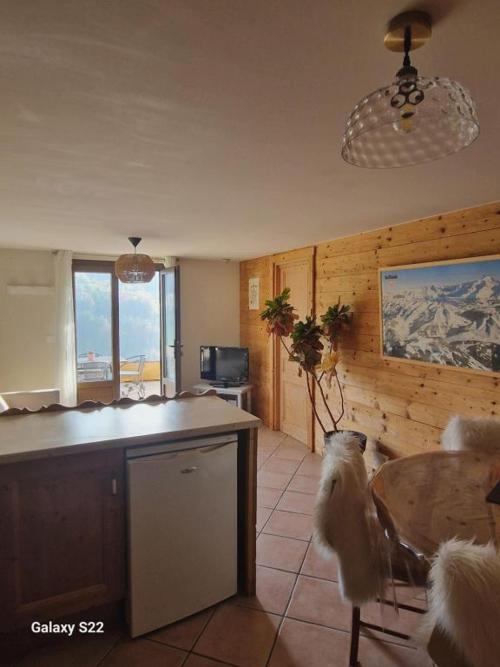 Pierre de Famille situa-se em Manigod, a 40 km de Halle Olympique d'Albertville, e dispõe de pátio, jardim e acesso Wi-Fi gratuito. Apresentando estacionamento privado gratuito, este apartamento está numa área onde os hóspedes podem desfrutar de atividades como caminhadas e esqui. Este apartamento com um terraço e vista da montanha apresenta 1 quarto, uma sala de estar, uma televisão de ecrã plano, uma cozinha equipada com frigorífico e máquina de lavar louça, e 1 casa de banho com chuveiro. Pierre de Famille disponibiliza comodidades para churrascos para uso dos hóspedes.